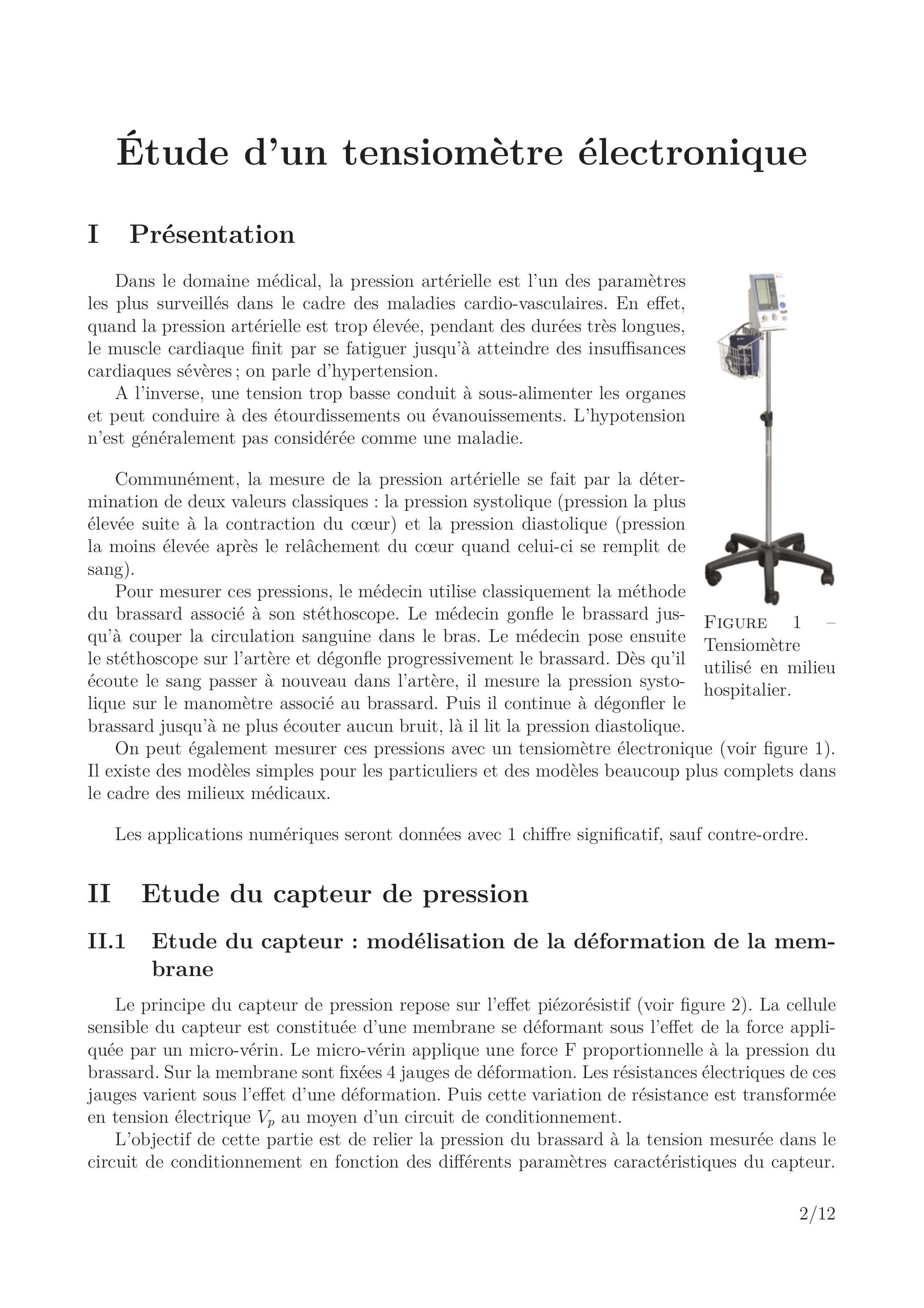 L'objectif de cette partie est de relier la pression du brassard à la tension mesurée dans le circuit de conditionnement en fonction des différents paramètres caractéristiques du capteur.