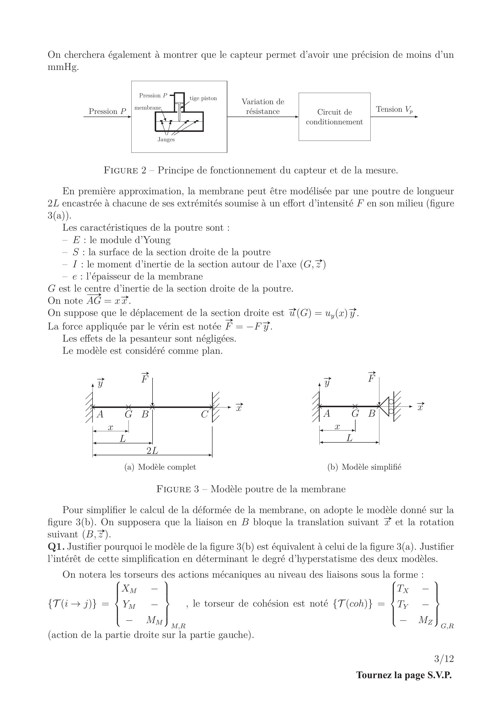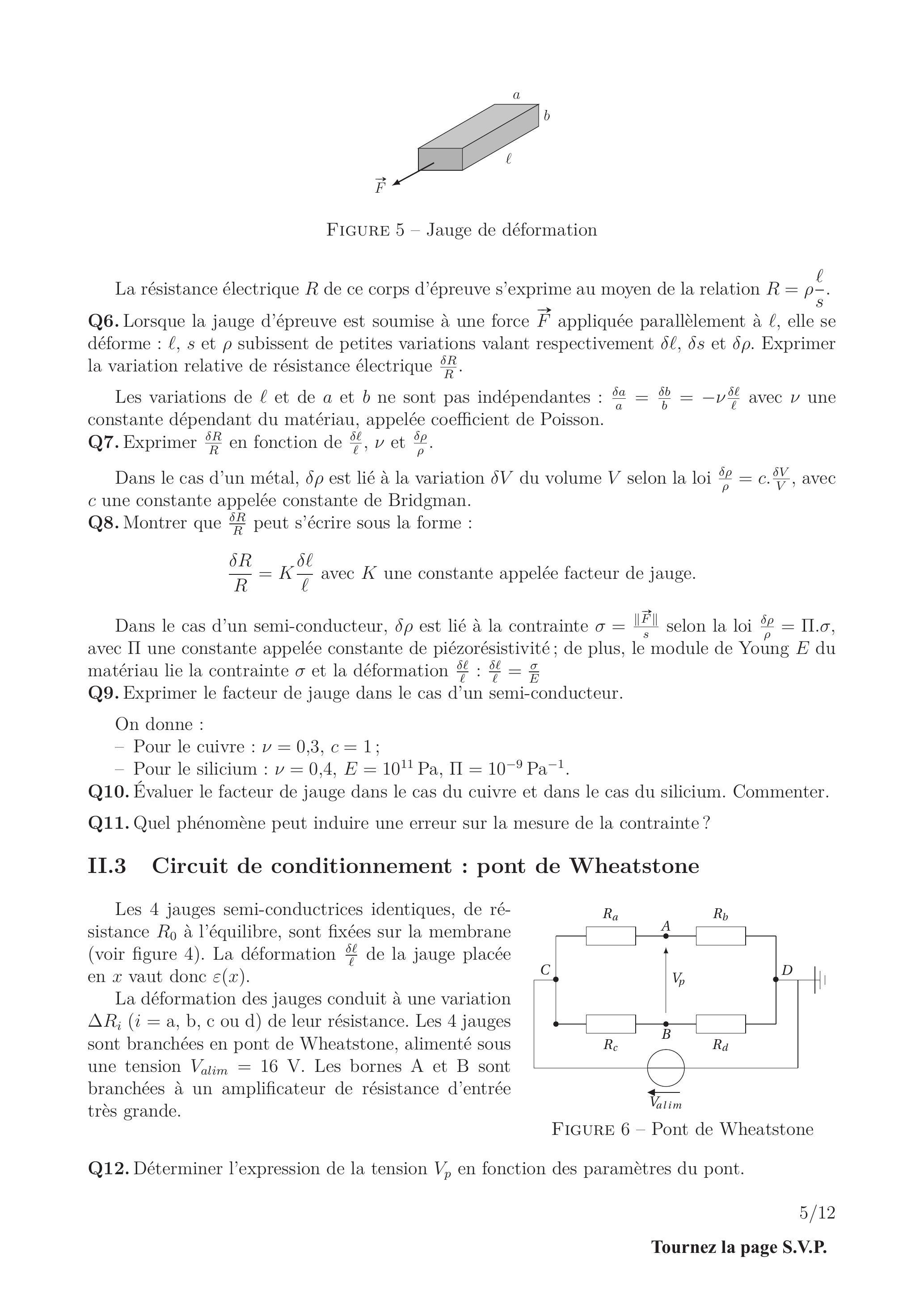 Les 4 jauges semi-conductrices identiques, de résistance à l'équilibre, sont fixées sur la membrane (voir figure 4). La déformation de la jauge placée en vaut donc .
