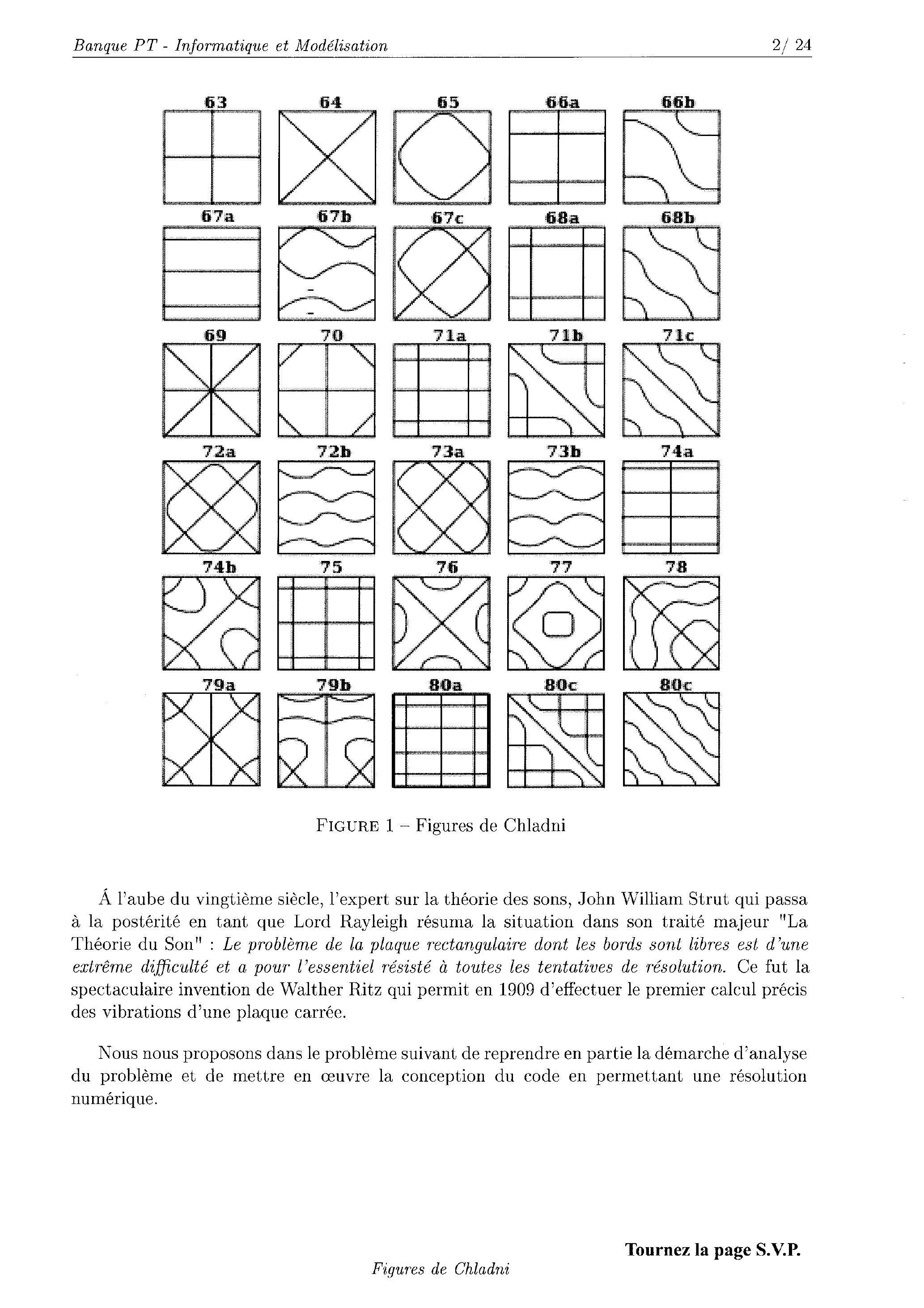 Á l'aube du vingtième siècle, l'expert sur la théorie des sons, John William Strut qui passa à la postérité en tant que Lord Rayleigh résuma la situation dans son traité majeur "La Théorie du Son" : Le problème de la plaque rectangulaire dont les bords sont libres est d'une extrême difficulté et a pour l'essentiel résisté à toutes les tentatives de résolution. Ce fut la spectaculaire invention de Walther Ritz qui permit en 1909 d'effectuer le premier calcul précis des vibrations d'une plaque carrée.