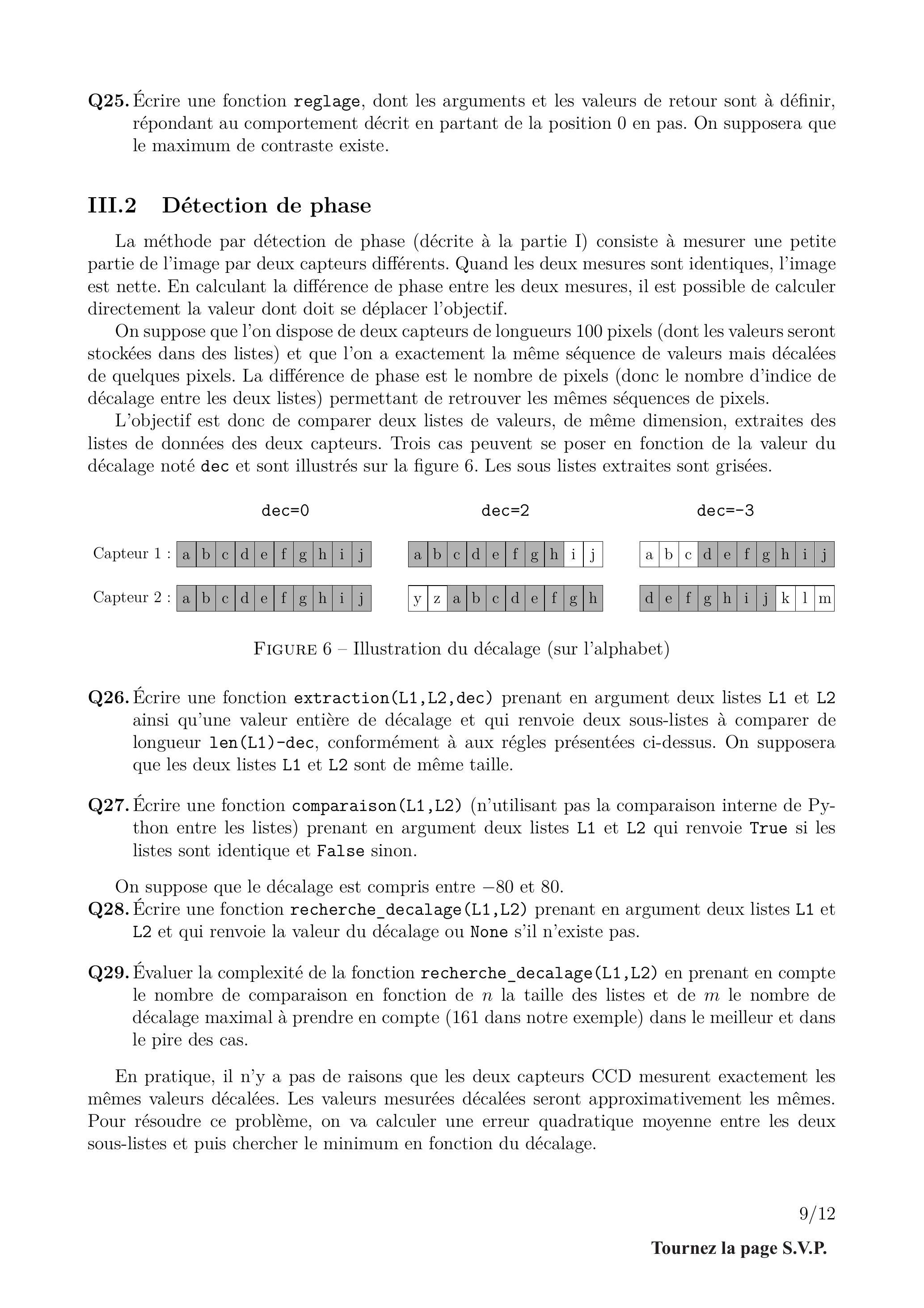 Q26. Écrire une fonction extraction(L1,L2,dec) prenant en argument deux listes L1 et L2 ainsi qu'une valeur entière de décalage et qui renvoie deux sous-listes à comparer de longueur len(L1)-dec, conformément à aux régles présentées ci-dessus. On supposera que les deux listes L1 et L2 sont de même taille.