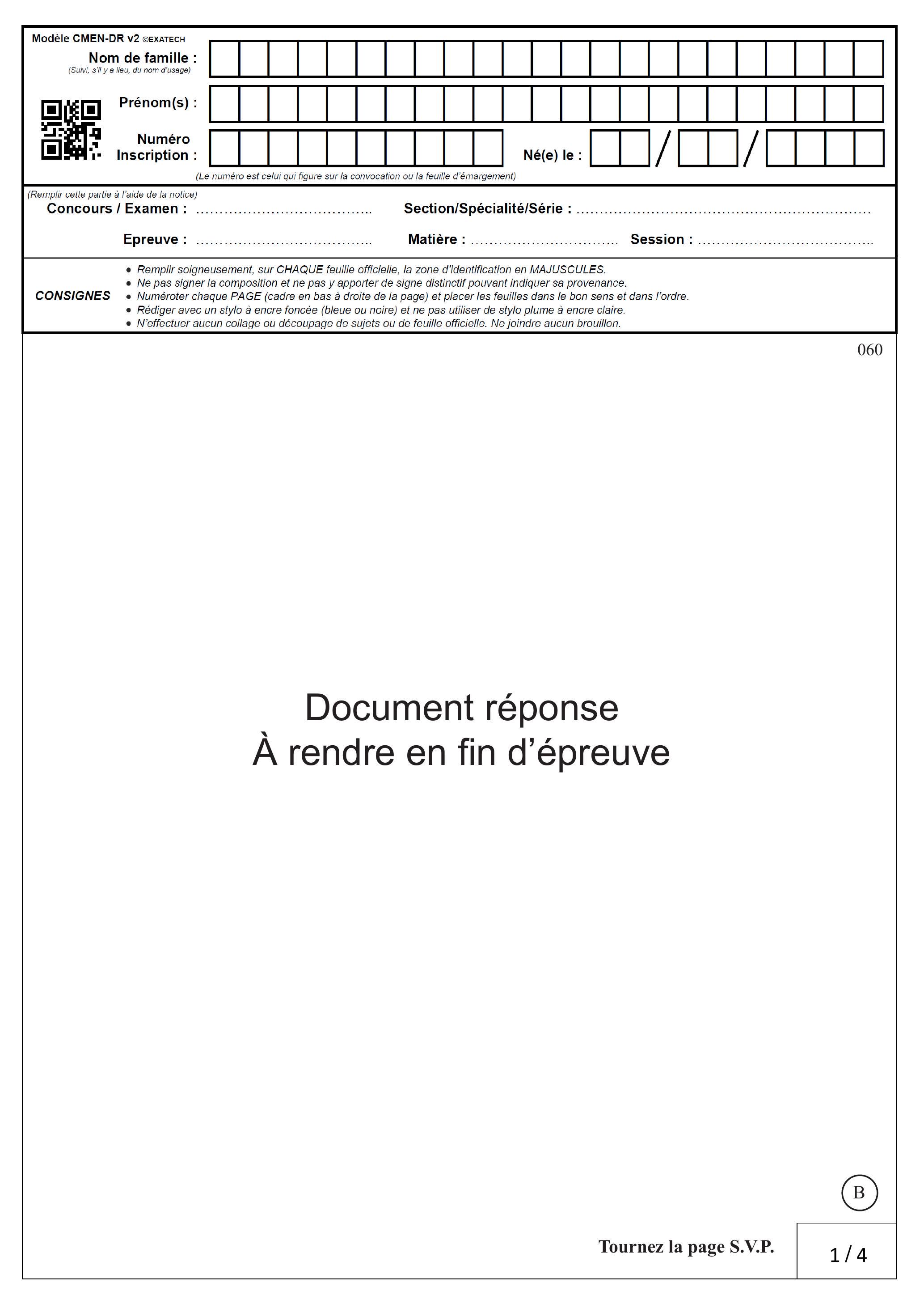 - N'effectuer aucun collage ou découpage de sujets ou de feuille officielle. Ne joindre aucun brouillon.