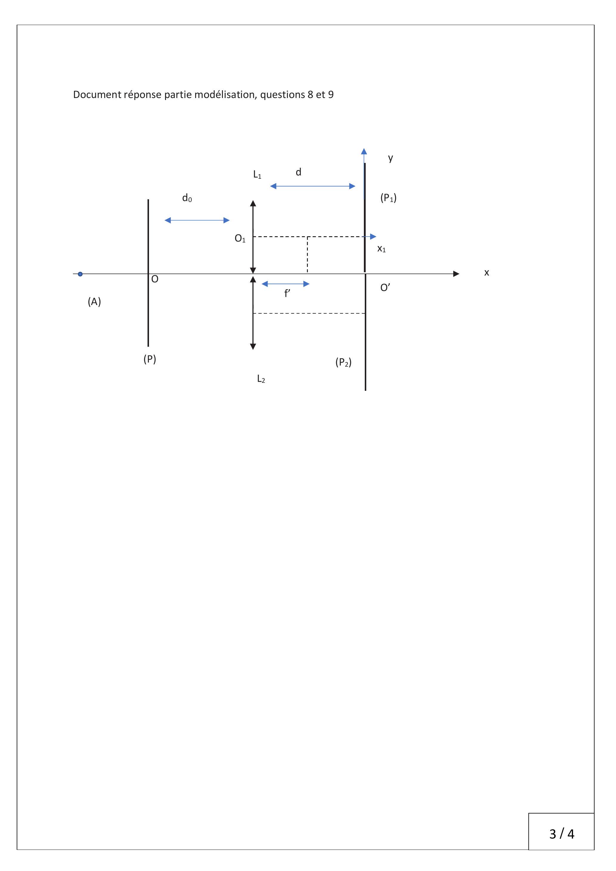 Q9. Sur le document réponse, tracer les rayons issus de passant par les extrémités des lentilles et .