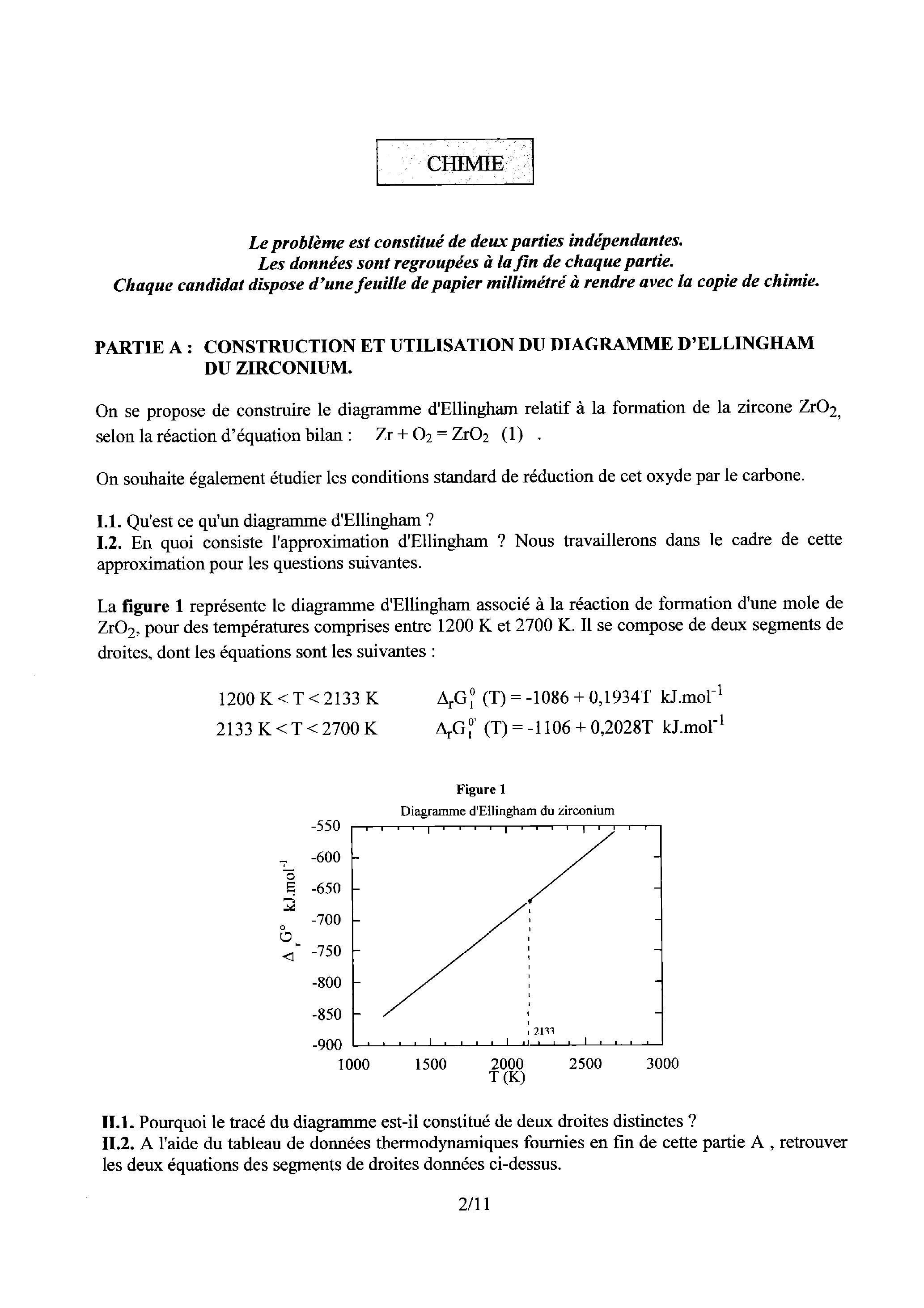 Le problème est constitué de deux parties indépendantes. Les données sont regroupées à la fin de chaque partie. Chaque candidat dispose d'une feuille de papier millimétré à rendre avec la copie de chimie.