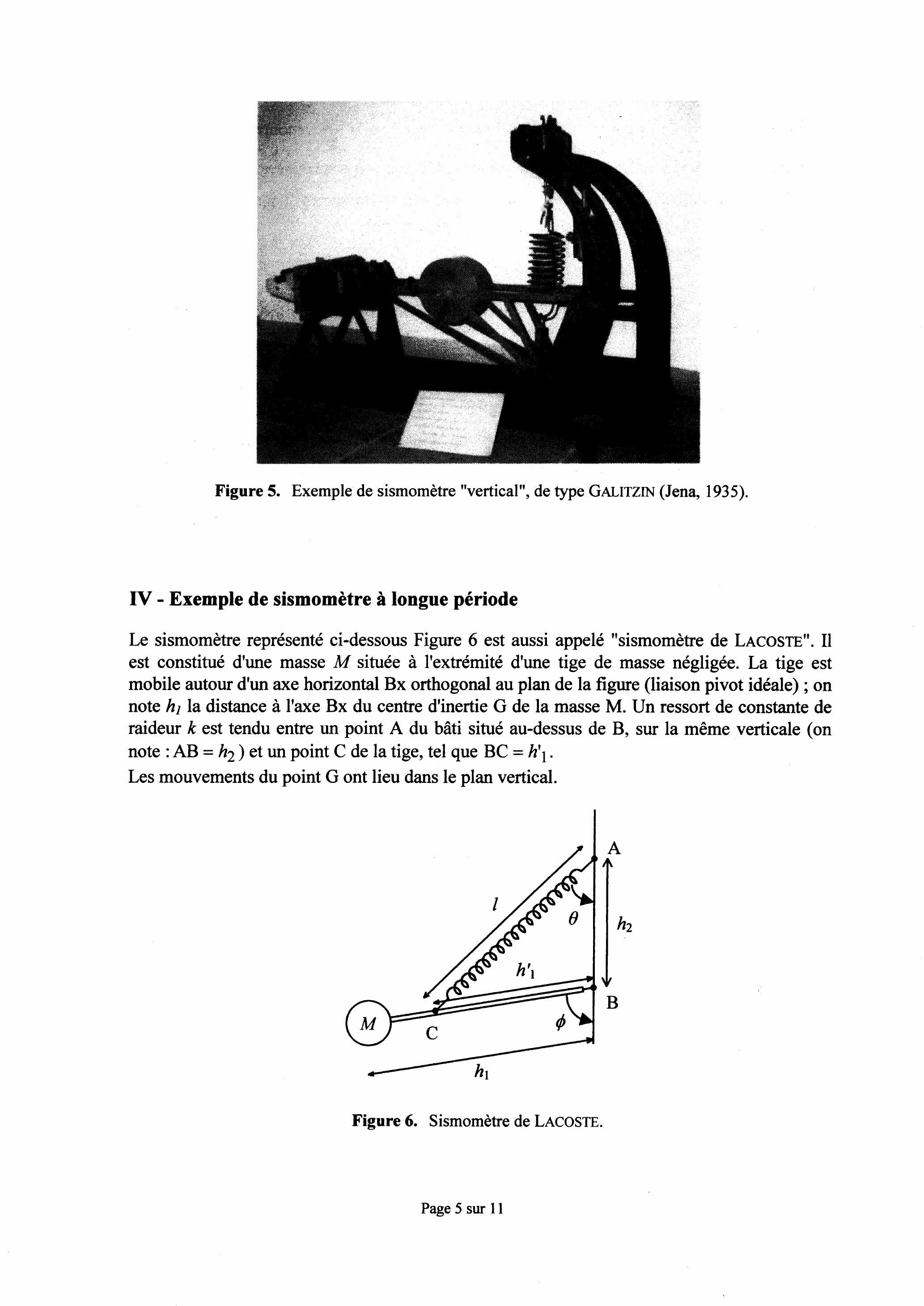 4. On définit la sensibilité d'un pendule sismique par la valeur absolue du quotient du déplacement de la masse par la variation de l'accélération sismique qui provoque ce déplacement.