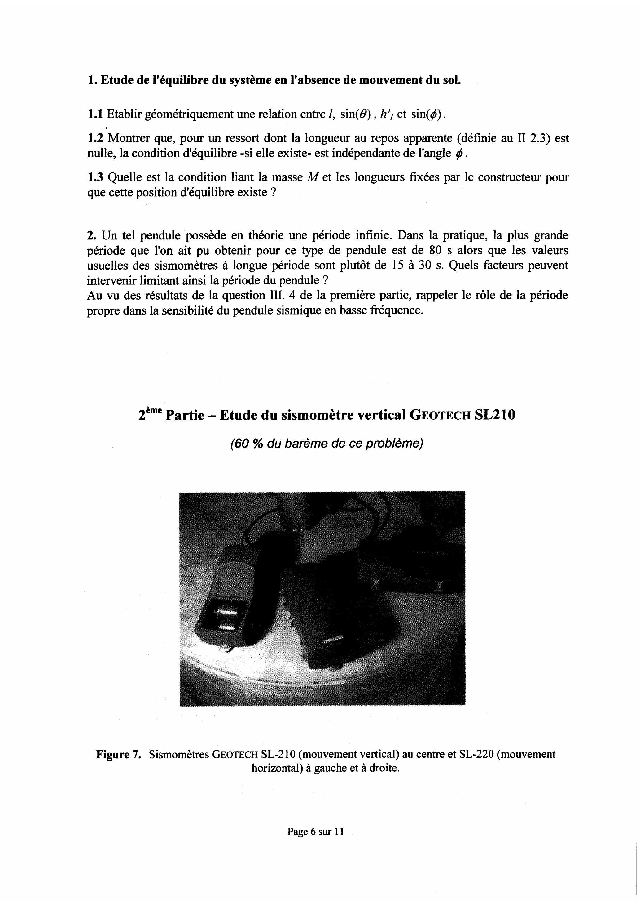 2. Un tel pendule possède en théorie une période infinie. Dans la pratique, la plus grande période que l'on ait pu obtenir pour ce type de pendule est de 80 s alors que les valeurs usuelles des sismomètres à longue période sont plutôt de 15 à 30 s . Quels facteurs peuvent intervenir limitant ainsi la période du pendule ?