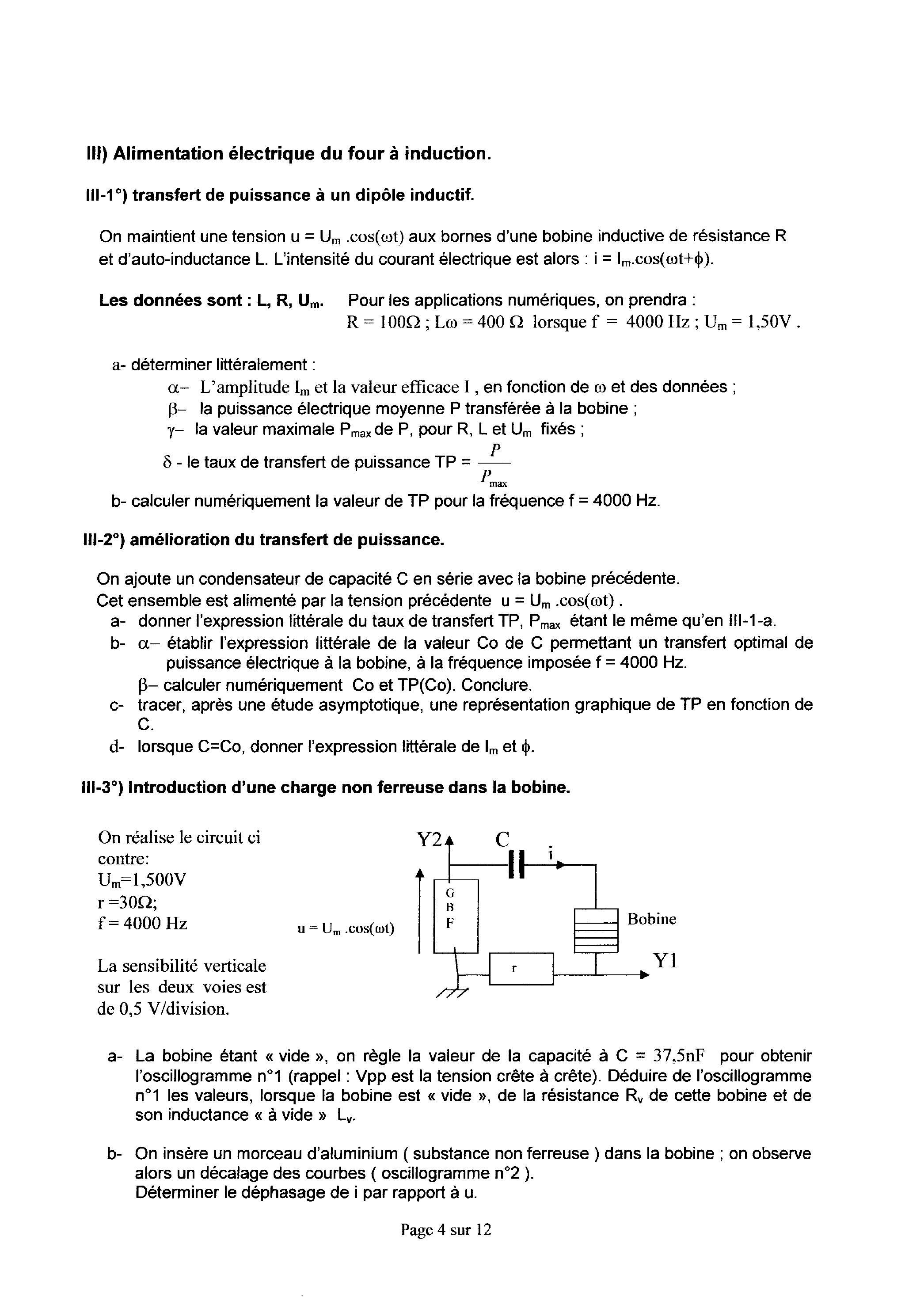 a- déterminer littéralement : - L'amplitude et la valeur efficace , en fonction de et des données ; - la puissance électrique moyenne P transférée à la bobine ; - la valeur maximale de P , pour et fixés ; - le taux de transfert de puissance