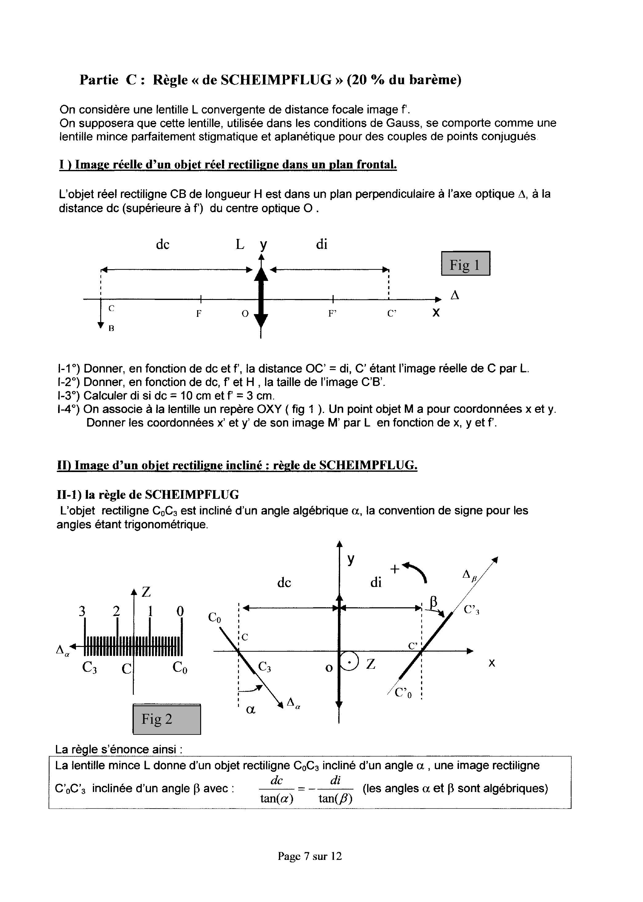 Partie C : Règle «de SCHEIMPFLUG» (20 % du barème)