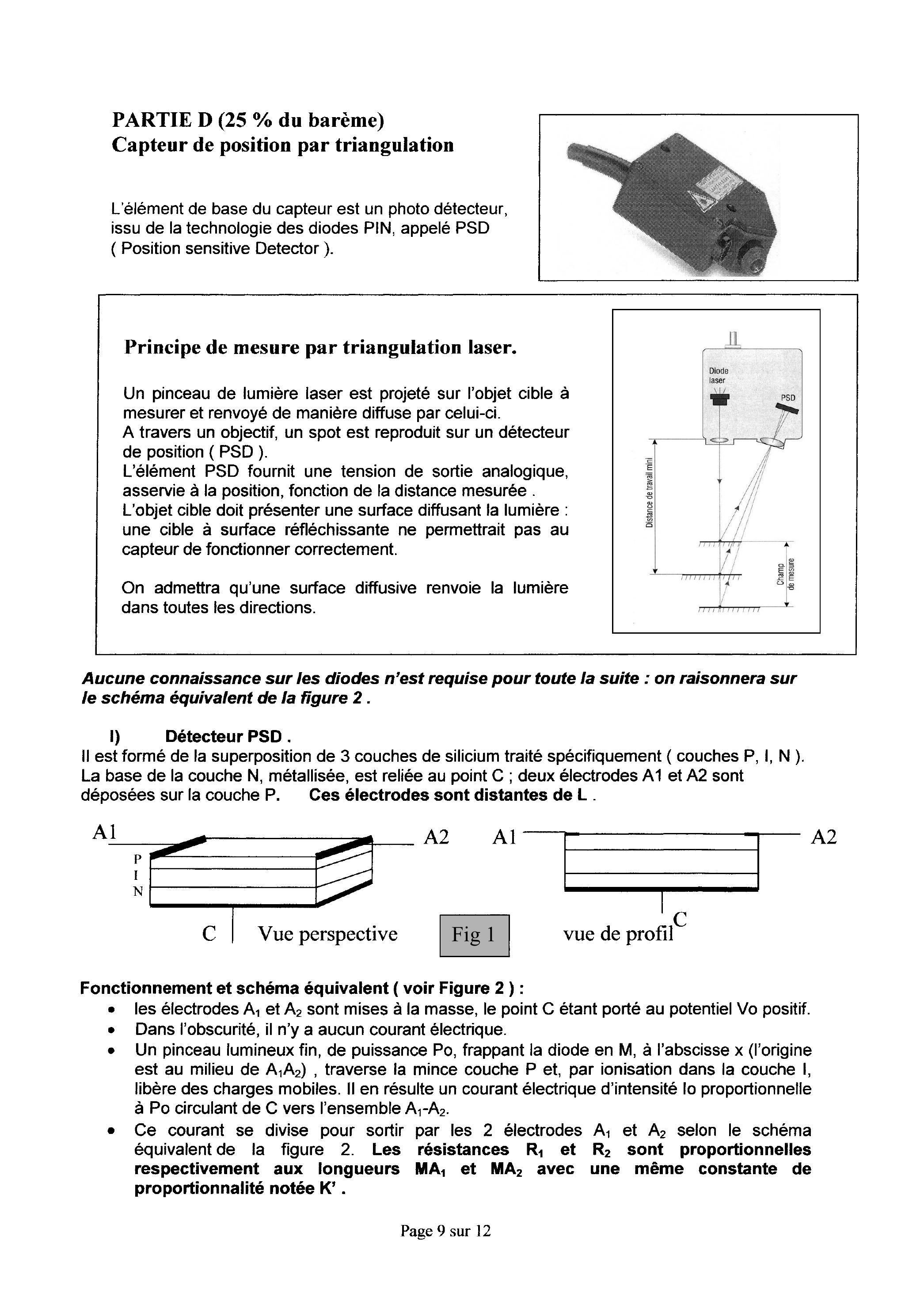 PARTIE D (25 % du barème) Capteur de position par triangulation