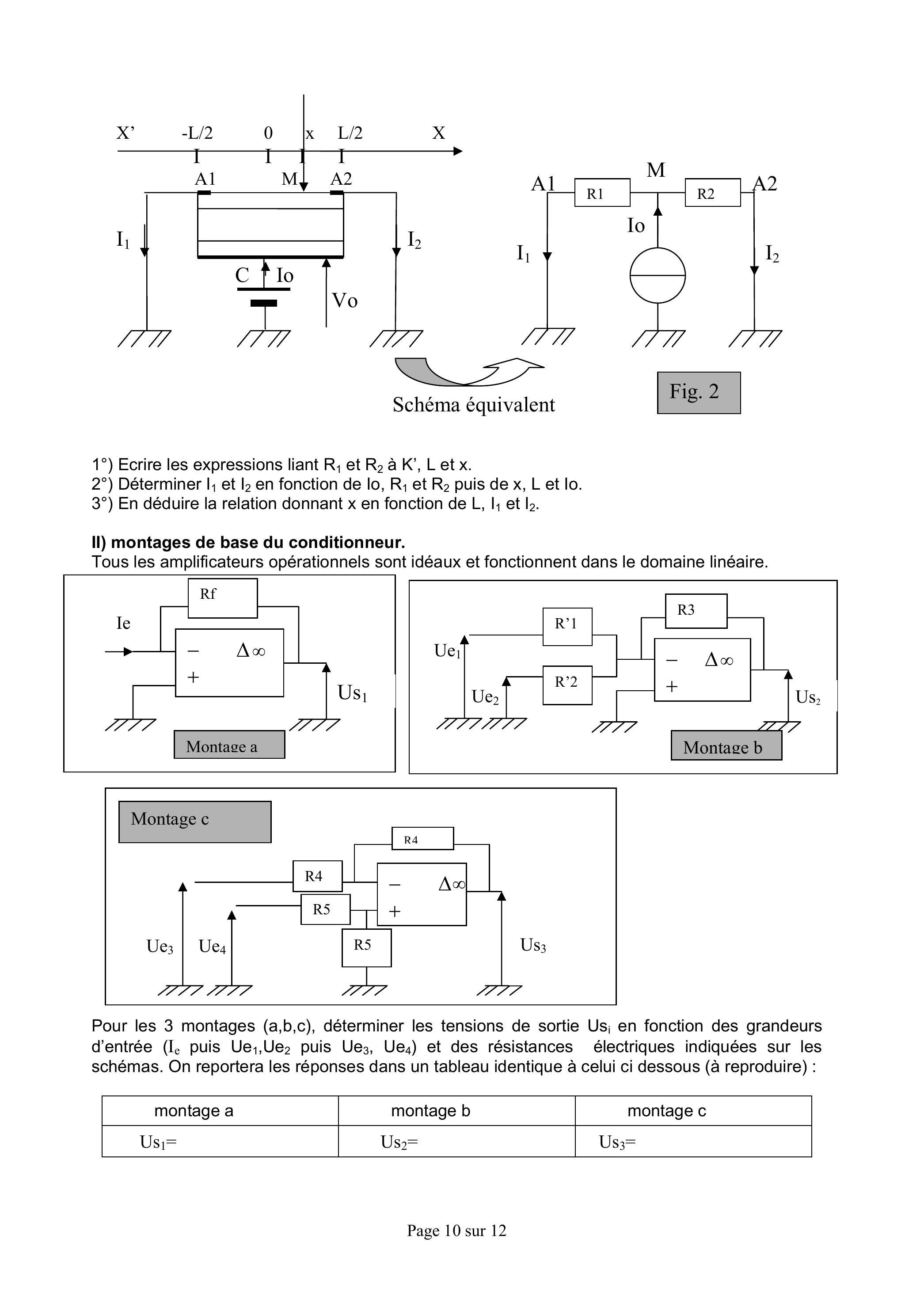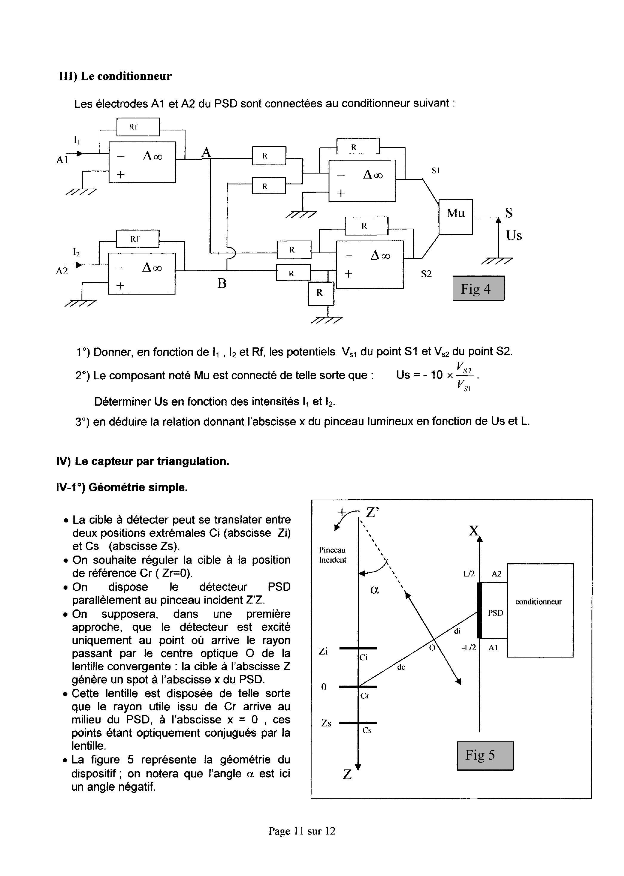 Les électrodes A1 et A2 du PSD sont connectées au conditionneur suivant : ) Donner, en fonction de et , les potentiels du point et du point . ) Le composant noté Mu est connecté de telle sorte que: Us .