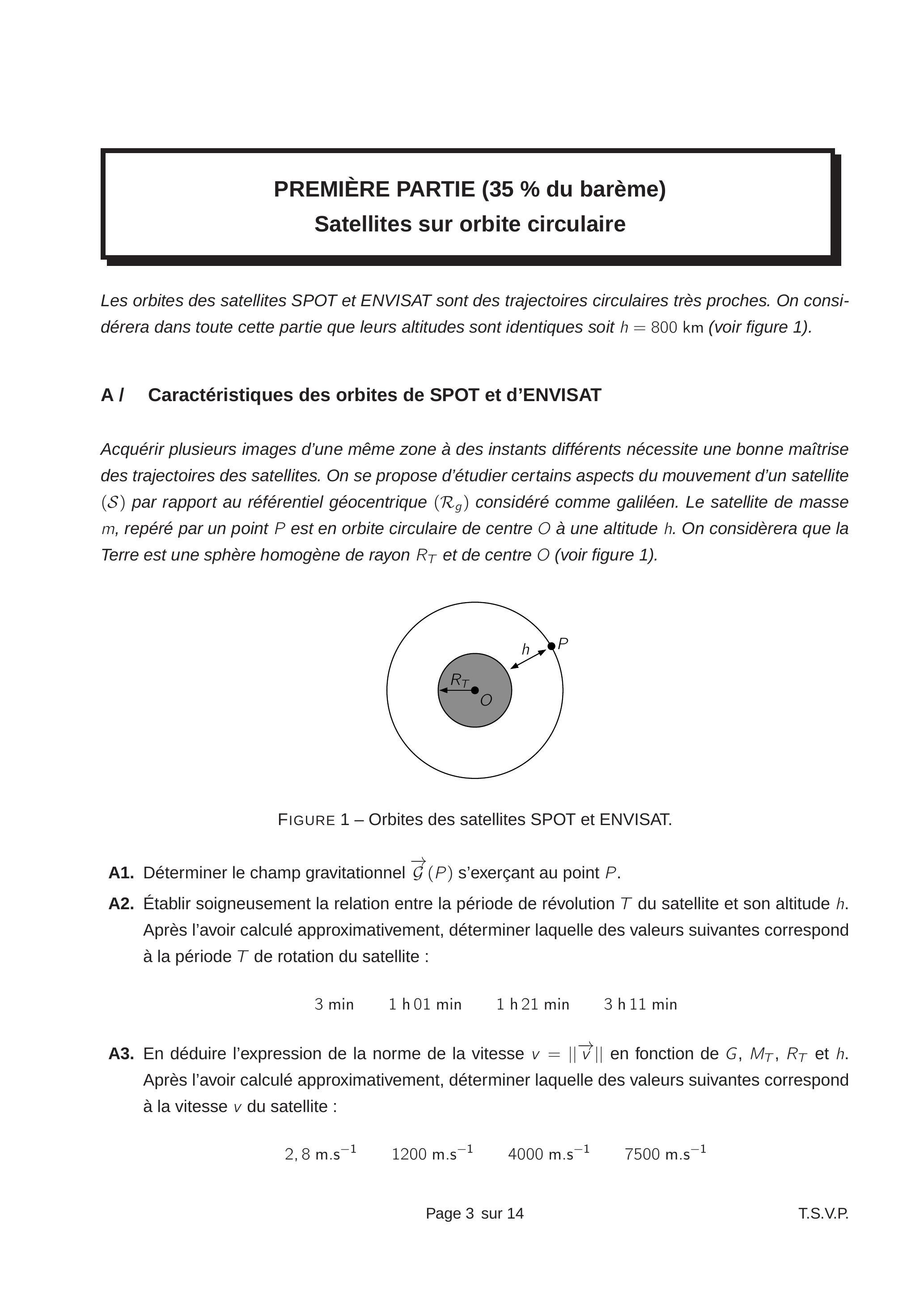 PREMIÈRE PARTIE (35 % du barème) Satellites sur orbite circulaire