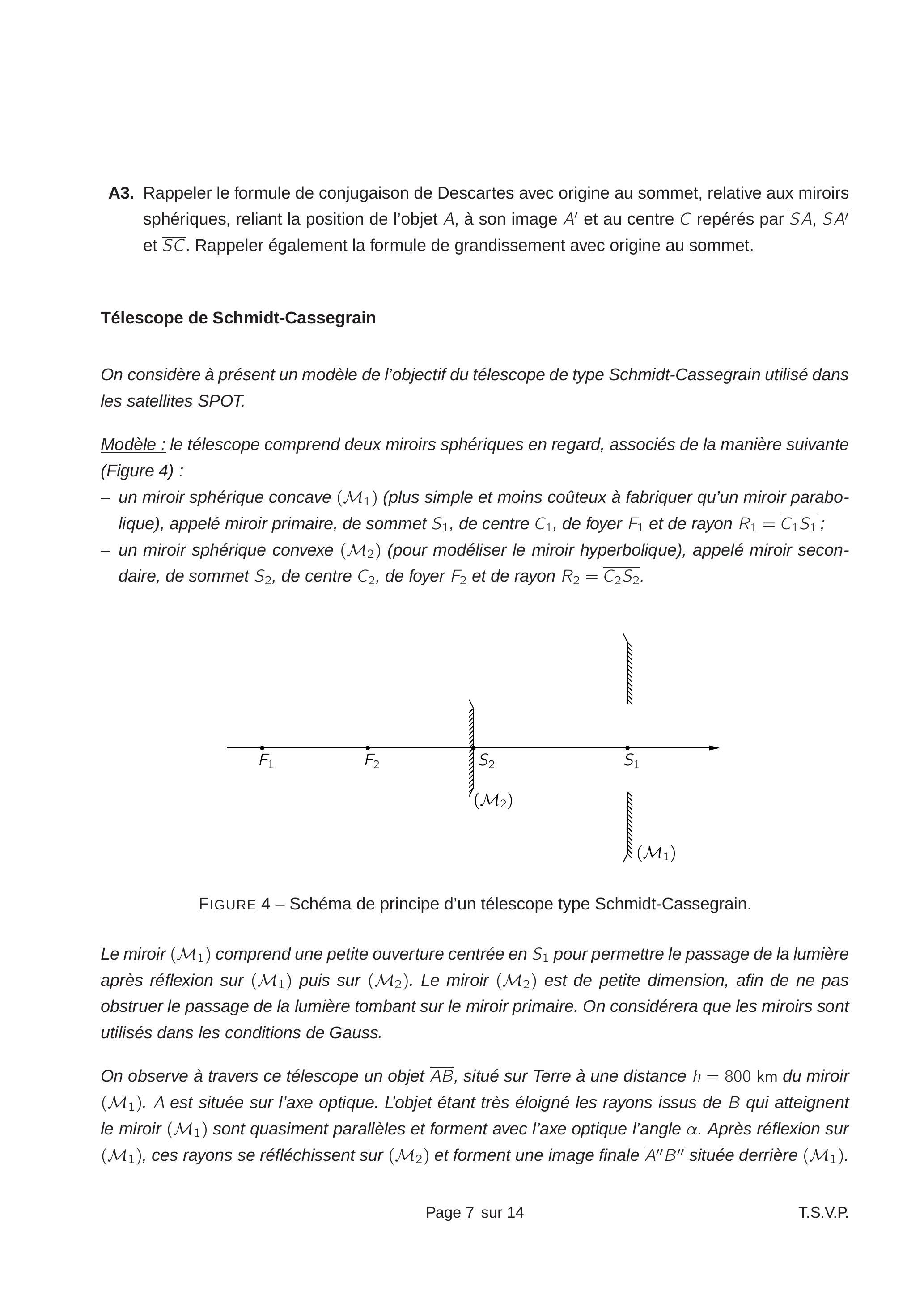 A6. Exprimer le grandissement transversal du miroir ( ), le grandissement transversal du miroir ( ), en fonction de et . Montrer que le grandissement total du télescope ainsi formé s'exprime comme :
