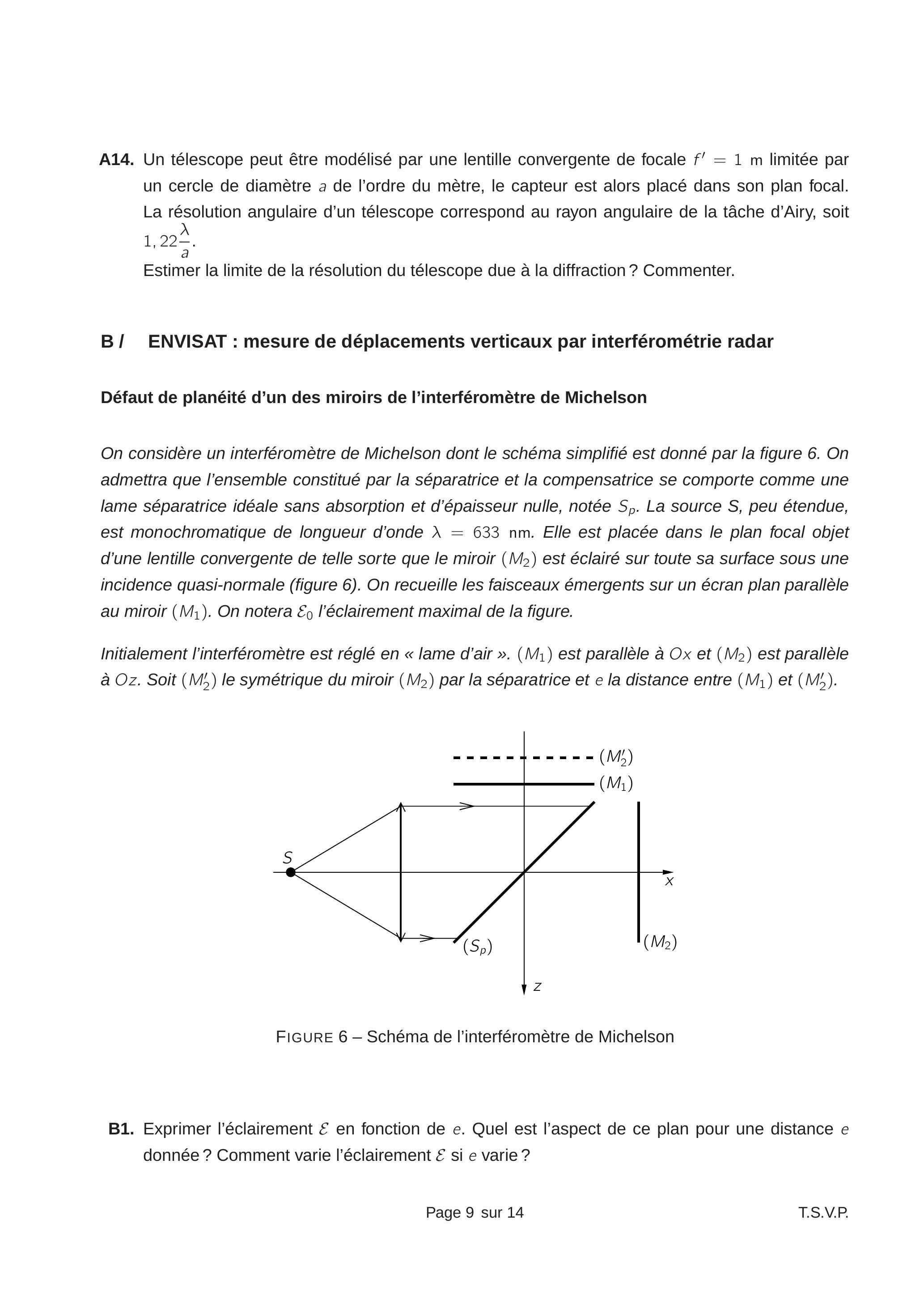 A14. Un télescope peut être modélisé par une lentille convergente de focale limitée par un cercle de diamètre a de l'ordre du mètre, le capteur est alors placé dans son plan focal. La résolution angulaire d'un télescope correspond au rayon angulaire de la tâche d'Airy, soit .