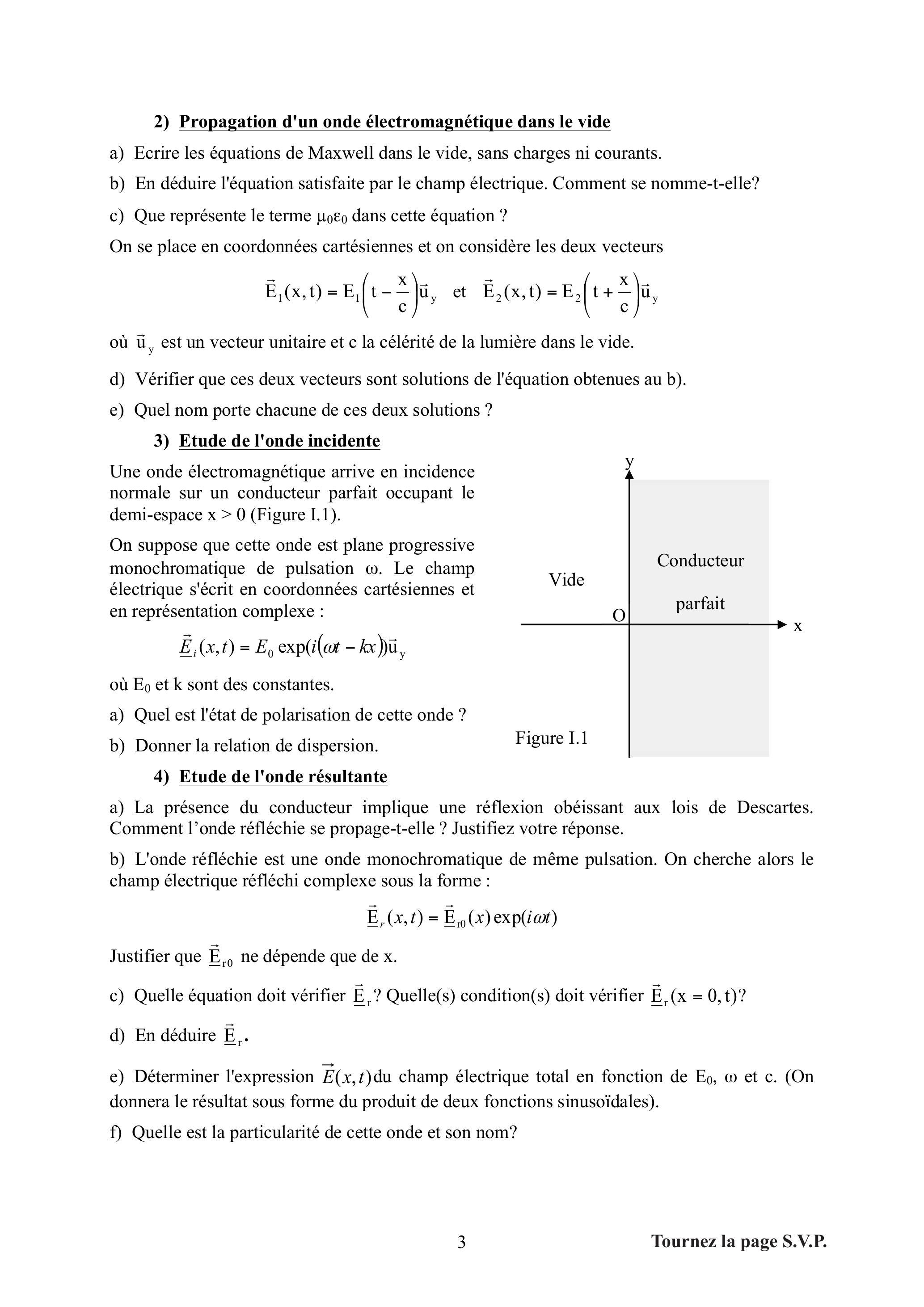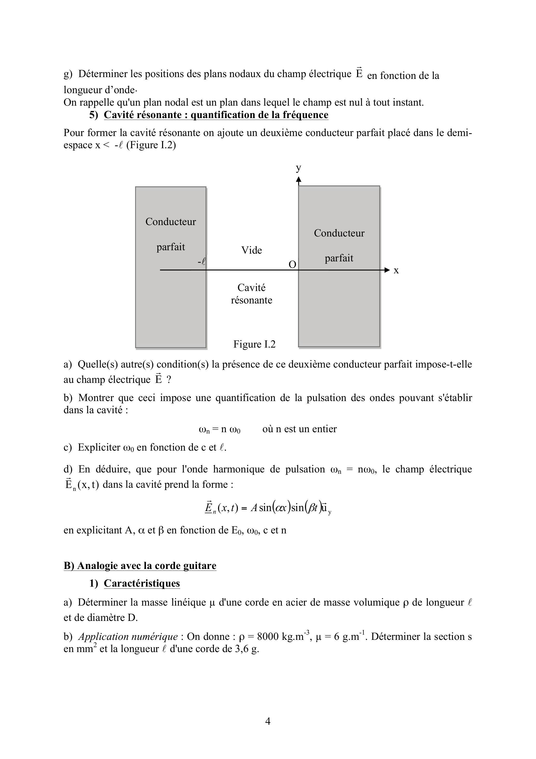 e) Déterminer l'expression du champ électrique total en fonction de et c. (On donnera le résultat sous forme du produit de deux fonctions sinusoïdales).