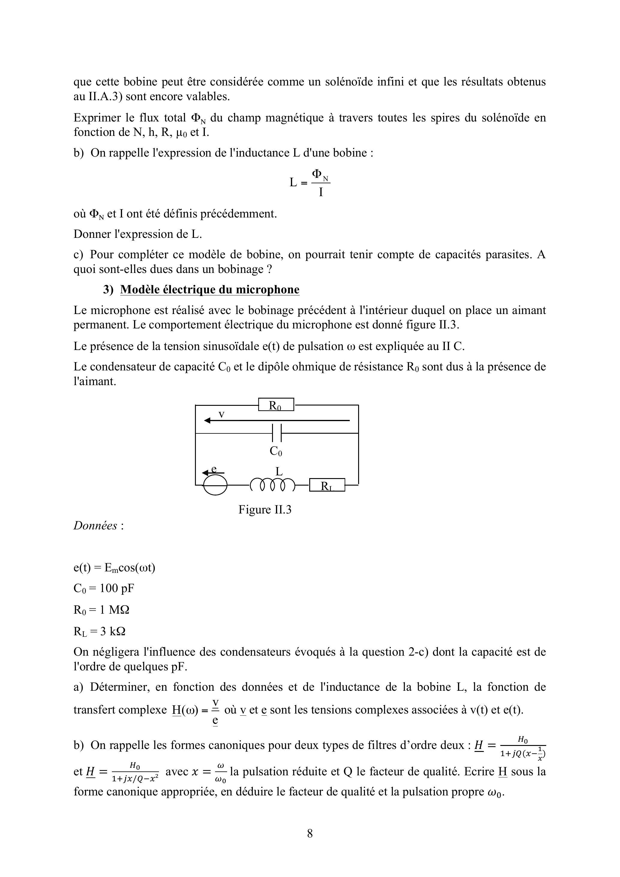 Afin de ne pas alourdir les calculs, on utilise ici un modèle électrique du microphone plus simple que celui présenté en II-B-3). On prendra seulement en compte la bobine d'inductance et de résistance associée à la force électromotrice .