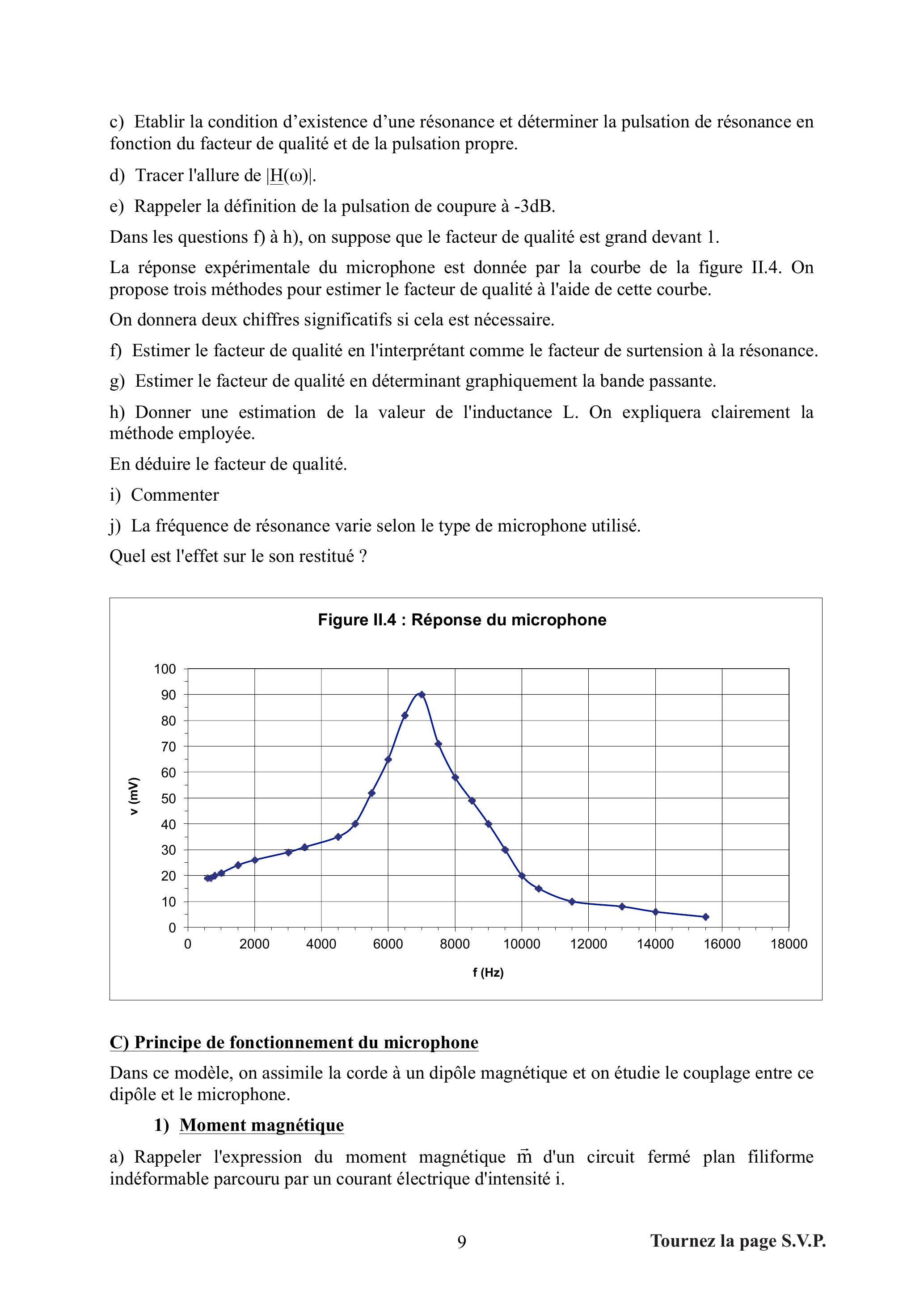 La réponse expérimentale du microphone est donnée par la courbe de la figure II.4. On propose trois méthodes pour estimer le facteur de qualité à l'aide de cette courbe.