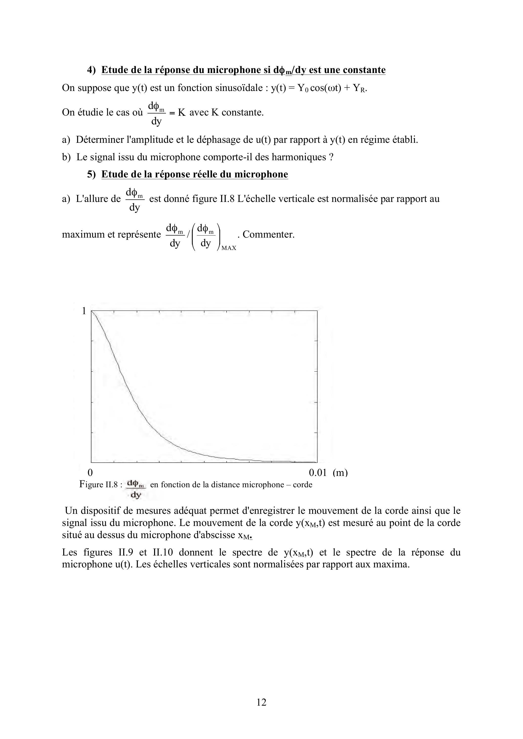 Un dispositif de mesures adéquat permet d'enregistrer le mouvement de la corde ainsi que le signal issu du microphone. Le mouvement de la corde est mesuré au point de la corde situé au dessus du microphone d'abscisse .