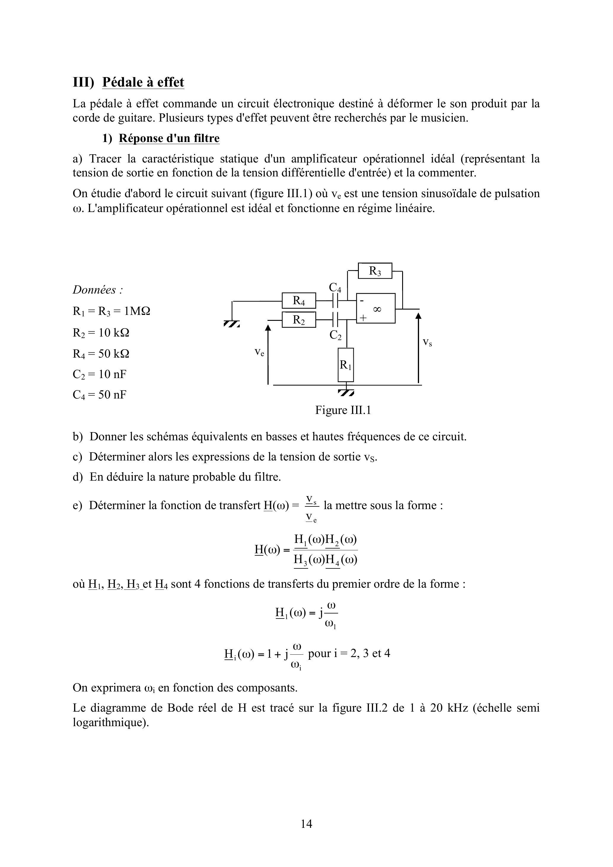 Le circuit étudié au 1) s'intègre dans le schéma de la pédale simplifiée représenté sur la figure III.3.