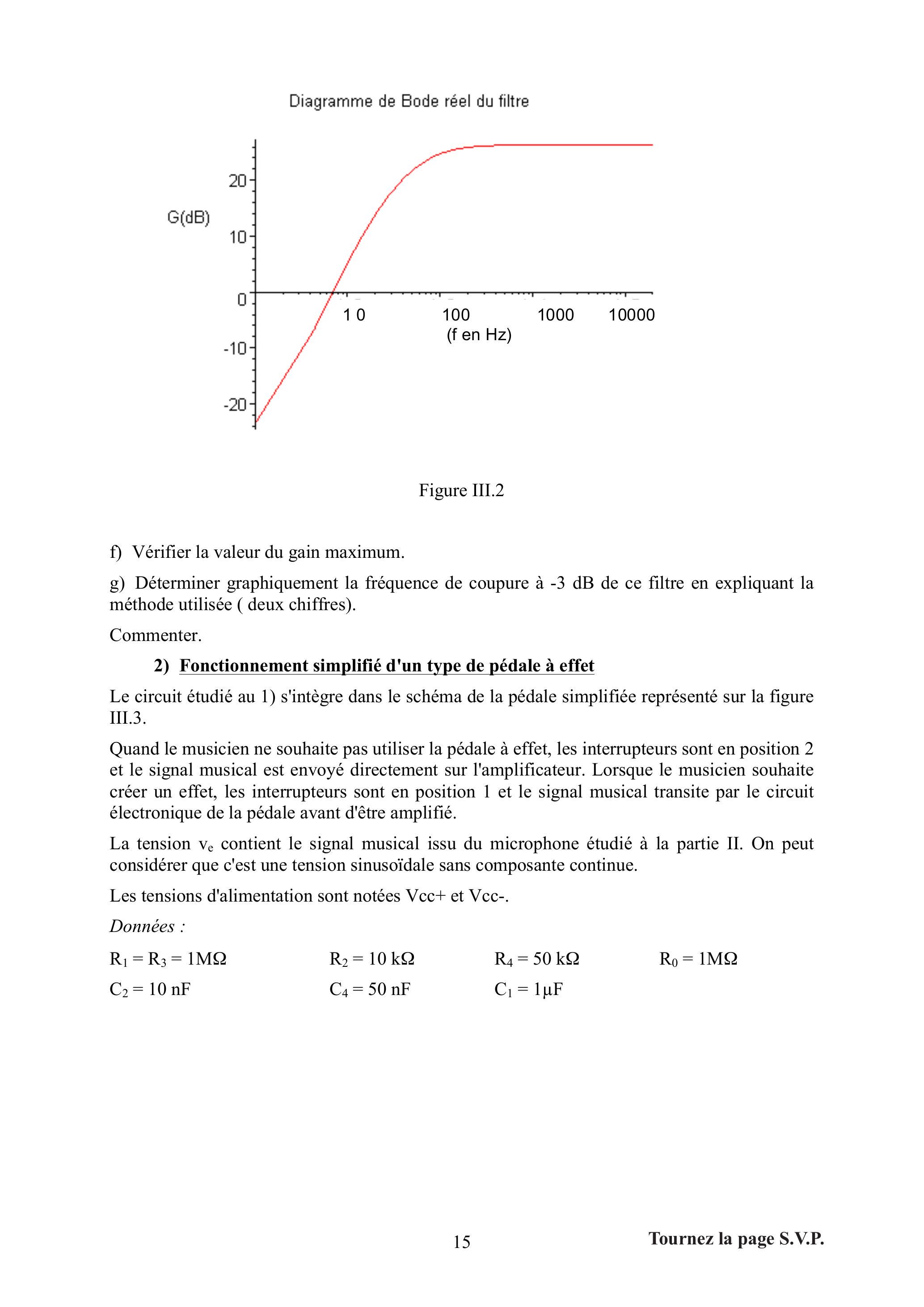 Le diagramme de Bode réel de H est tracé sur la figure III. 2 de 1 à 20 kHz (échelle semi logarithmique).