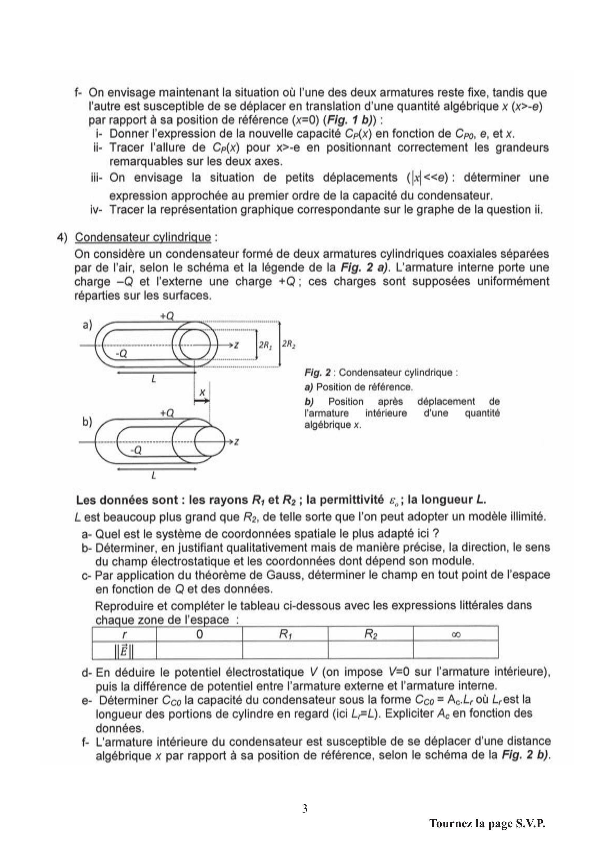 e- Déterminer la capacité du condensateur sous la forme où est la longueur des portions de cylindre en regard (ici ). Expliciter en fonction des données.