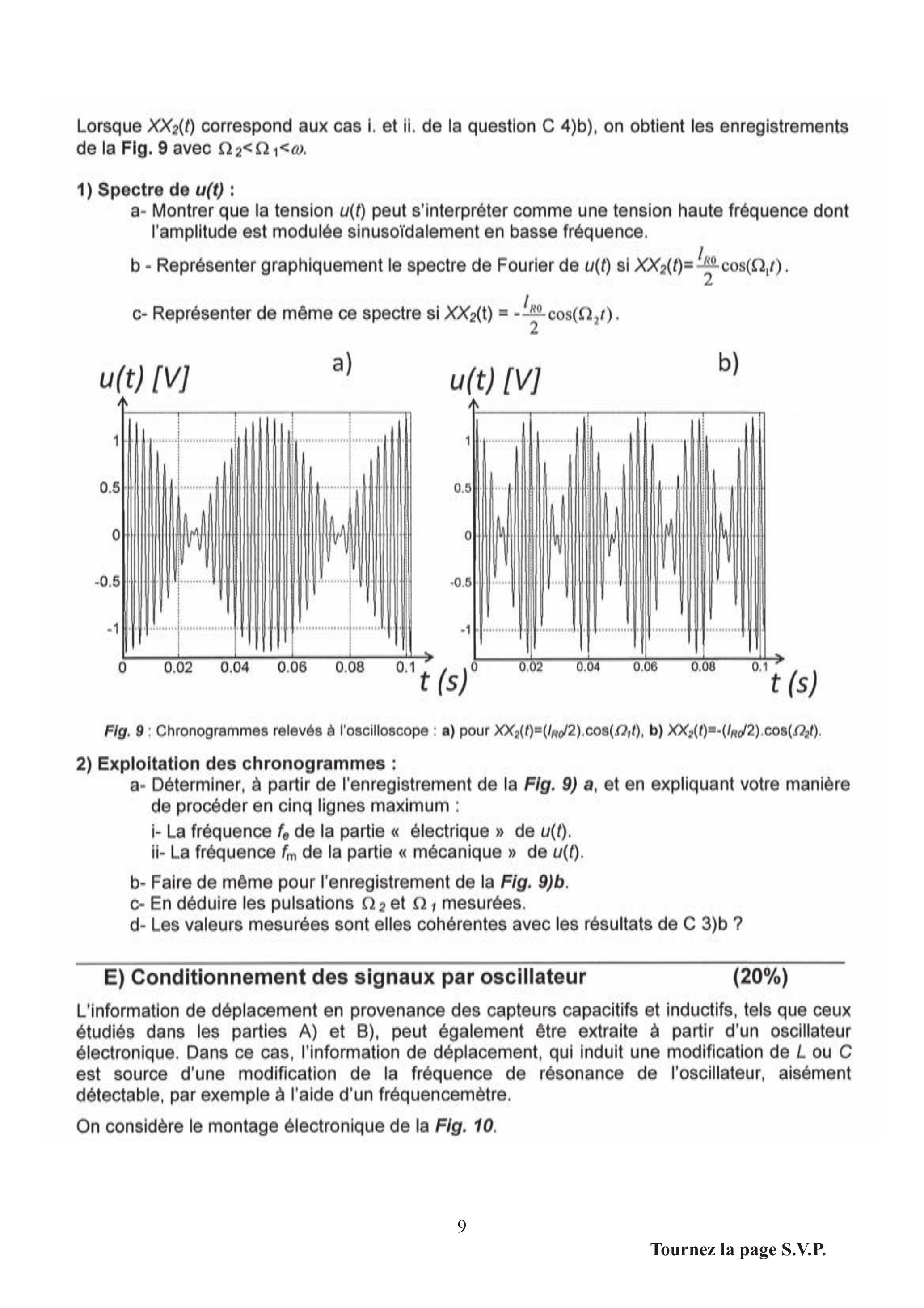 Lorsque correspond aux cas i. et ii. de la question C 4)b), on obtient les enregistrements de la Fig. 9 avec .