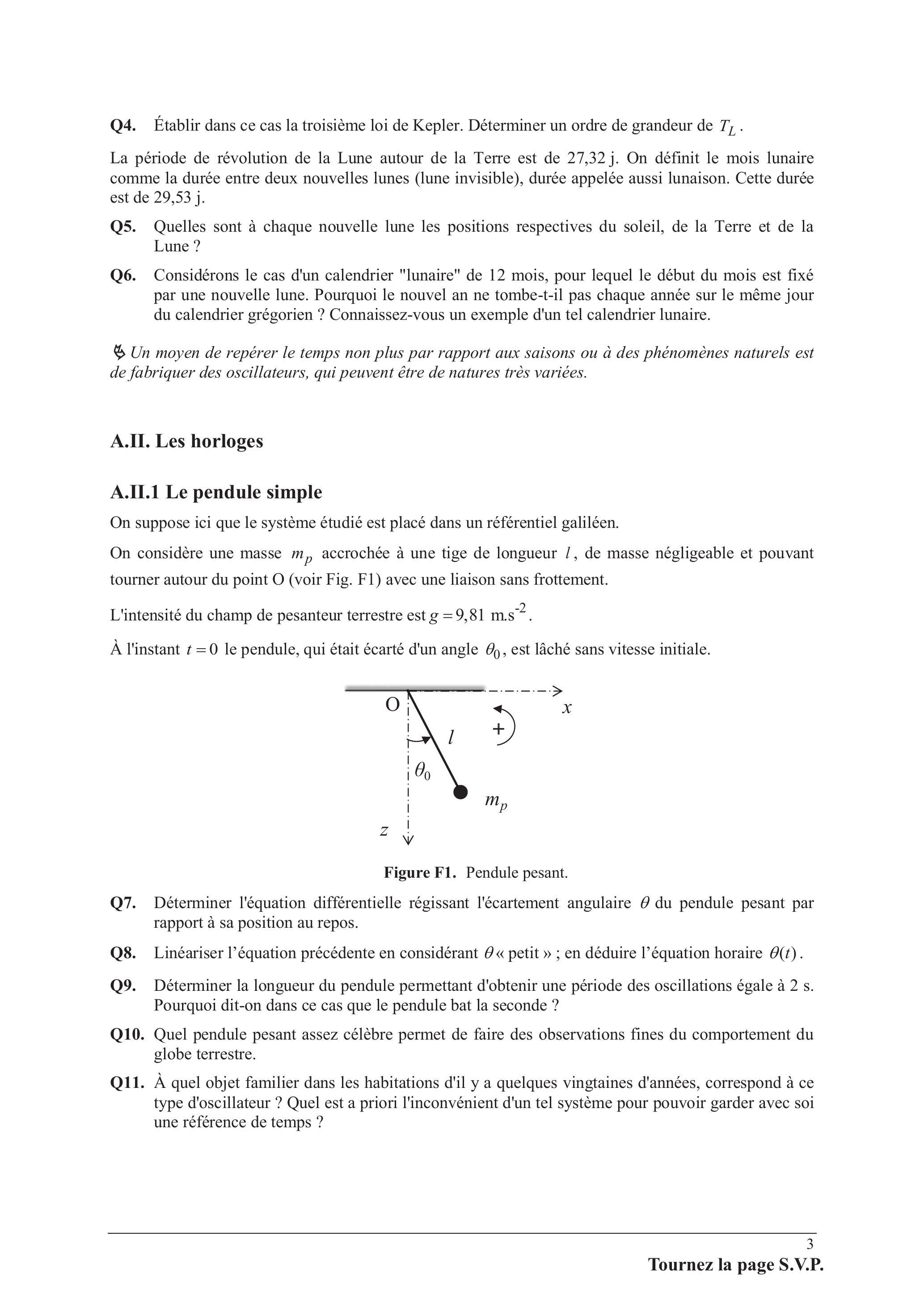 Q8. Linéariser l'équation précédente en considérant «petit»; en déduire l'équation horaire .