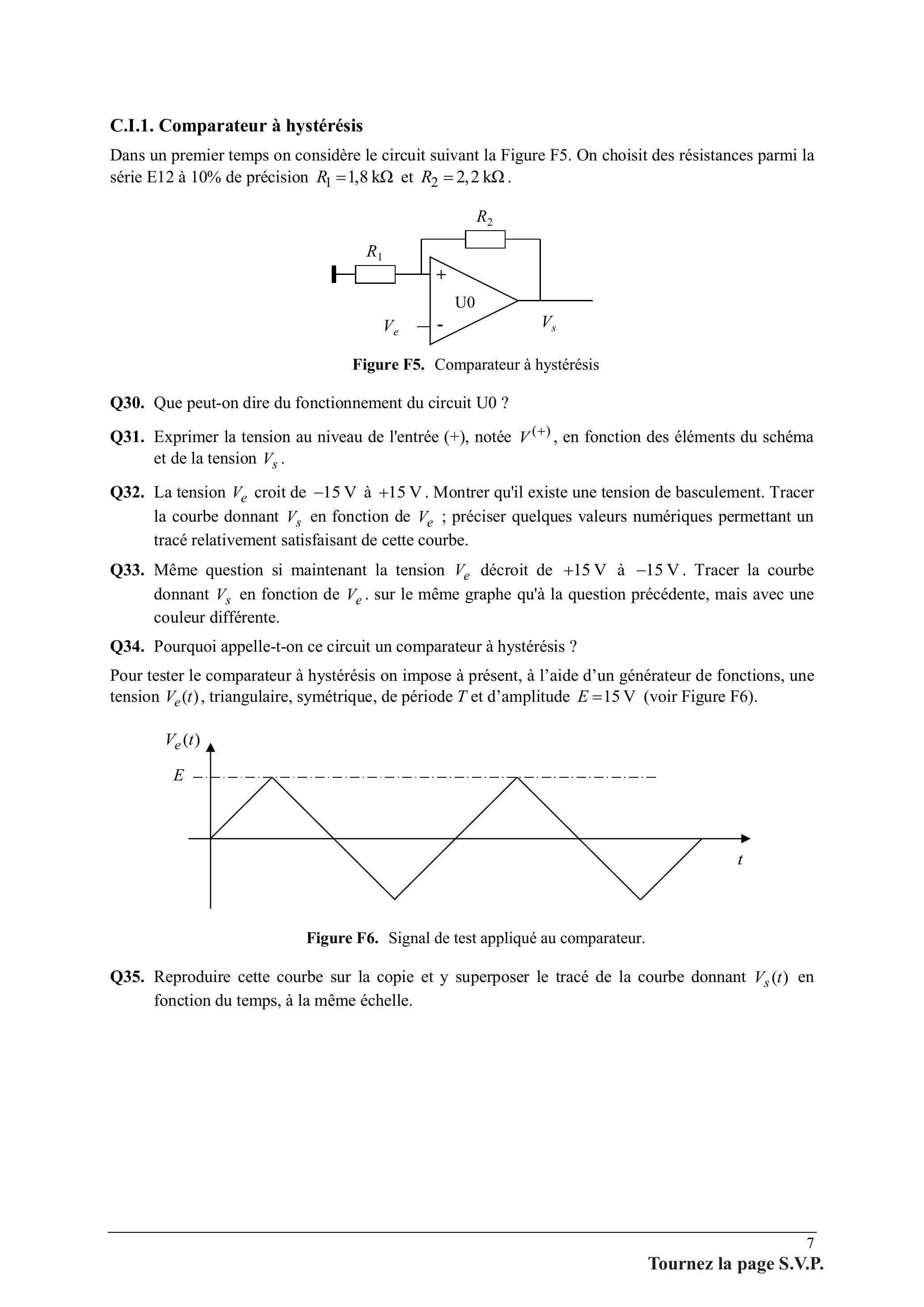 C.I.1. Comparateur à hystérésis