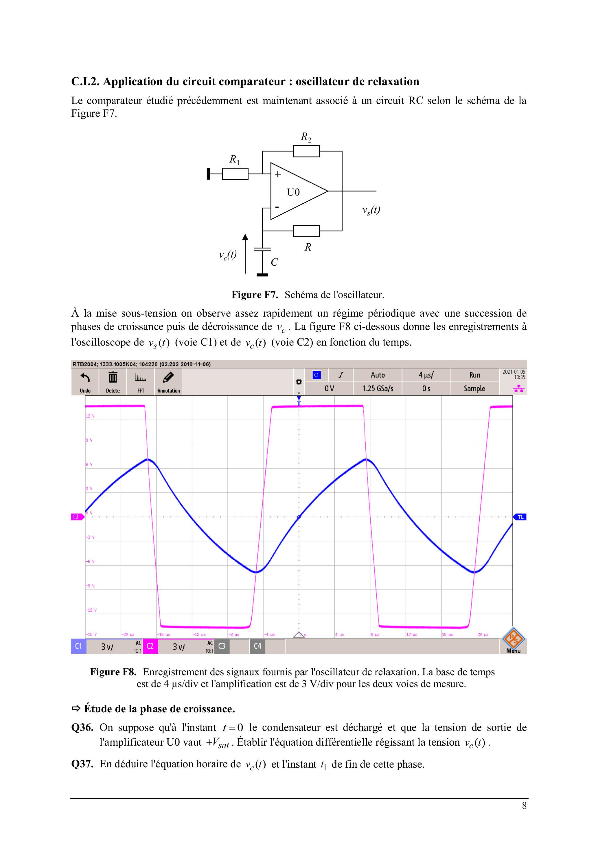 Le comparateur étudié précédemment est maintenant associé à un circuit RC selon le schéma de la Figure F7.