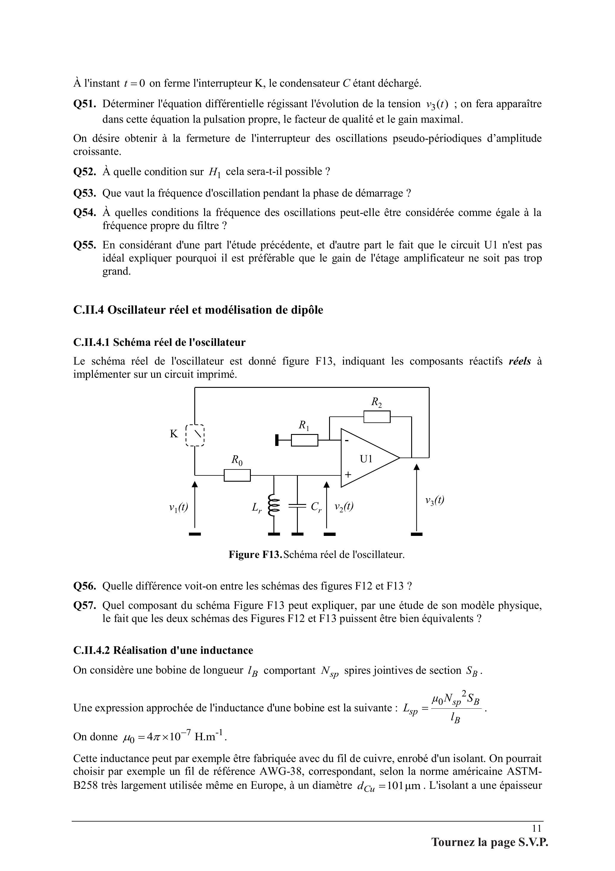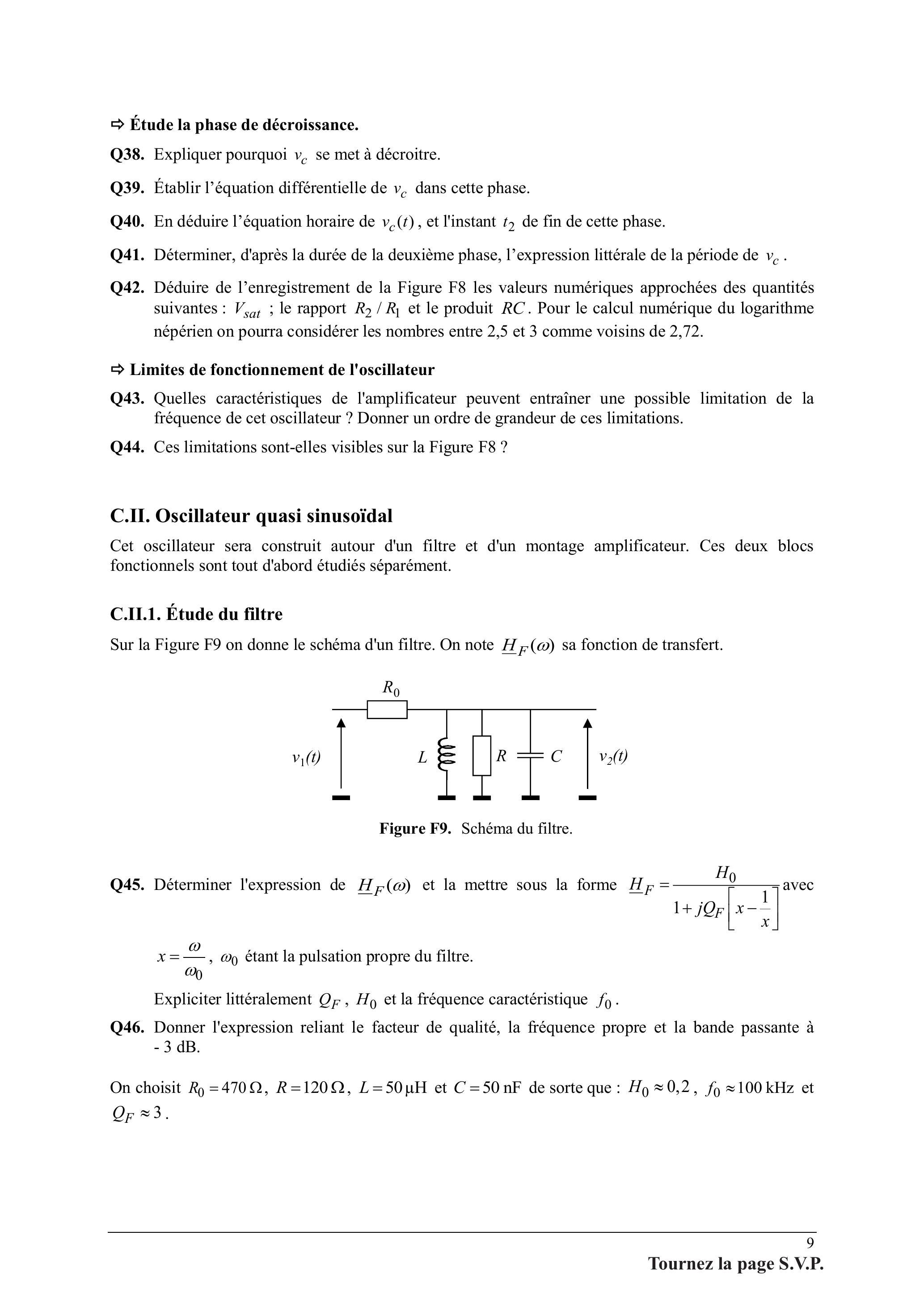 Q54. À quelles conditions la fréquence des oscillations peut-elle être considérée comme égale à la fréquence propre du filtre ?