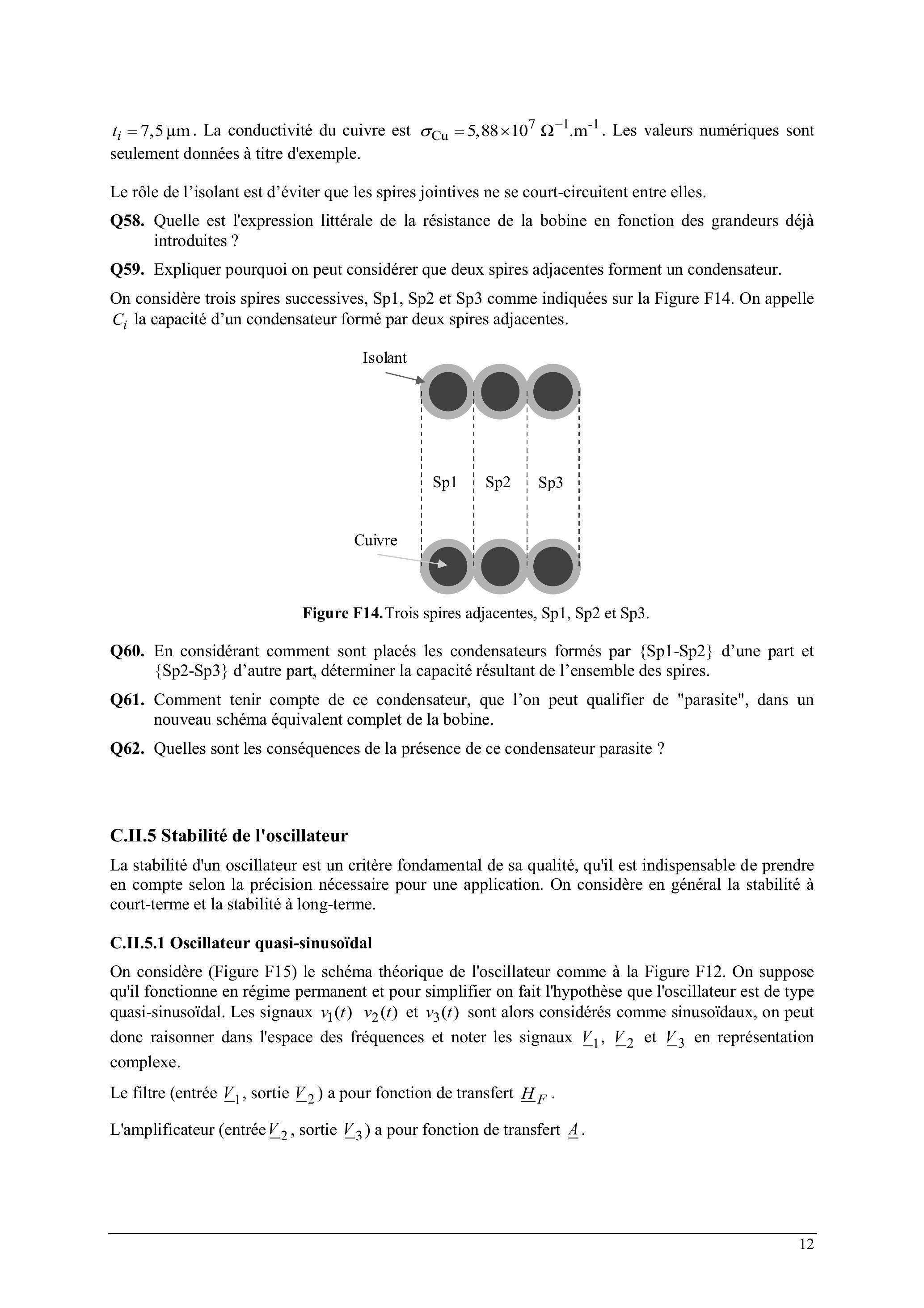 Q59. Expliquer pourquoi on peut considérer que deux spires adjacentes forment un condensateur.