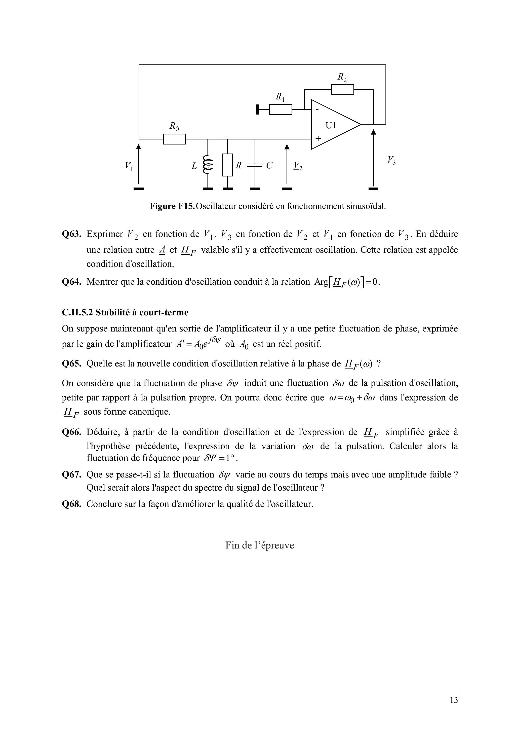 Q65. Quelle est la nouvelle condition d'oscillation relative à la phase de ?
