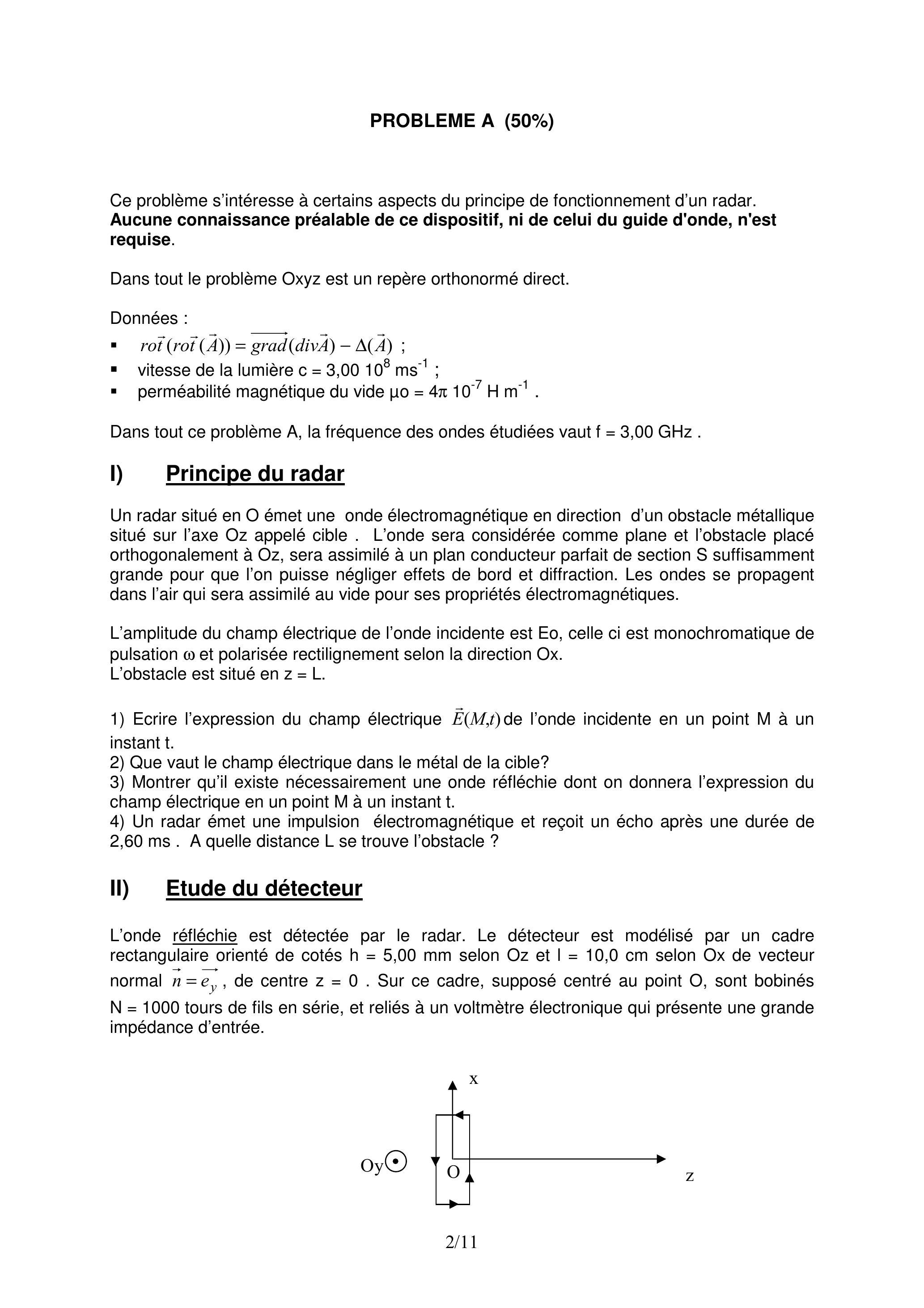 Ce problème s'intéresse à certains aspects du principe de fonctionnement d'un radar. Aucune connaissance préalable de ce dispositif, ni de celui du guide d'onde, n'est requise.