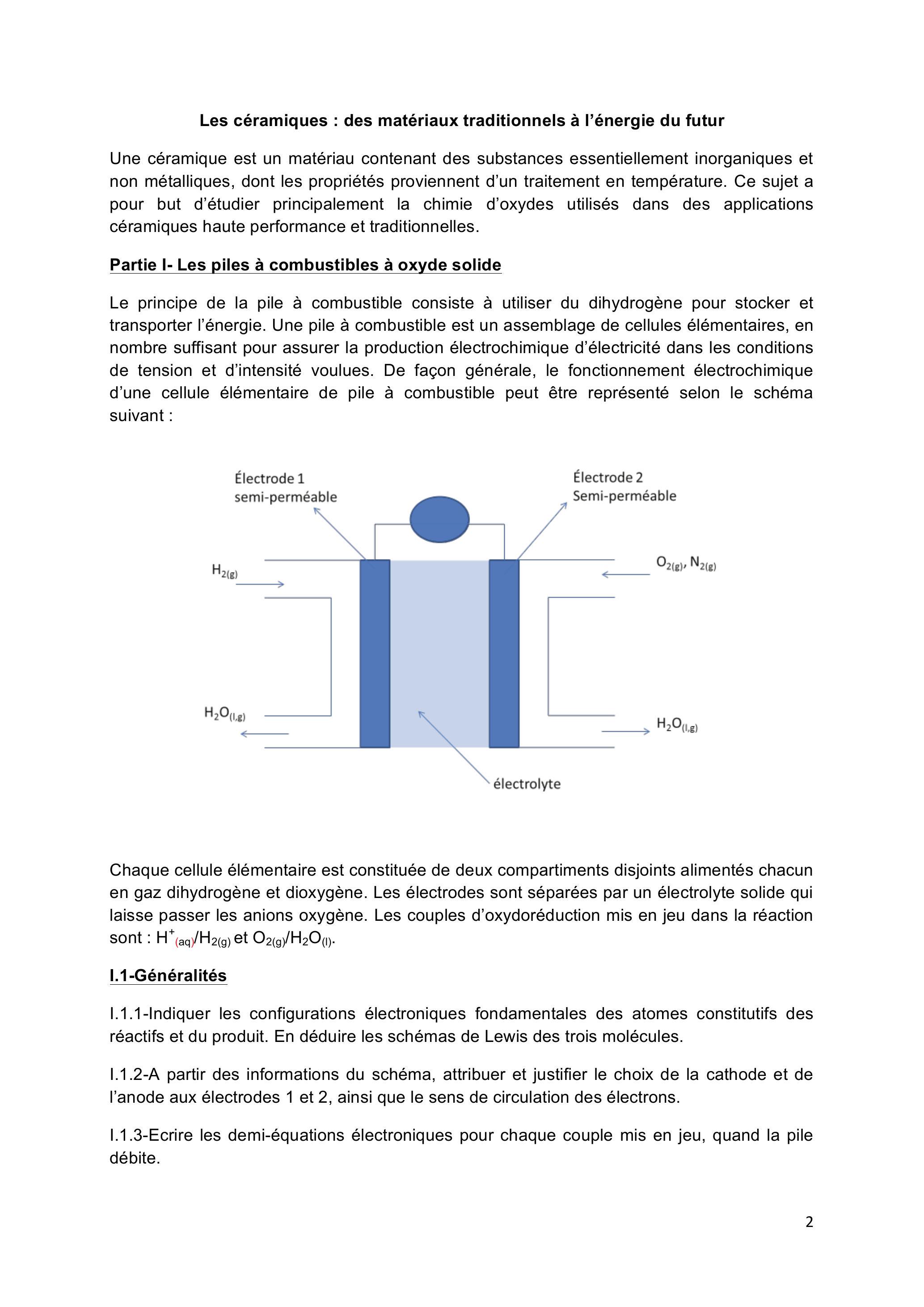 Une céramique est un matériau contenant des substances essentiellement inorganiques et non métalliques, dont les propriétés proviennent d'un traitement en température. Ce sujet a pour but d'étudier principalement la chimie d'oxydes utilisés dans des applications céramiques haute performance et traditionnelles.