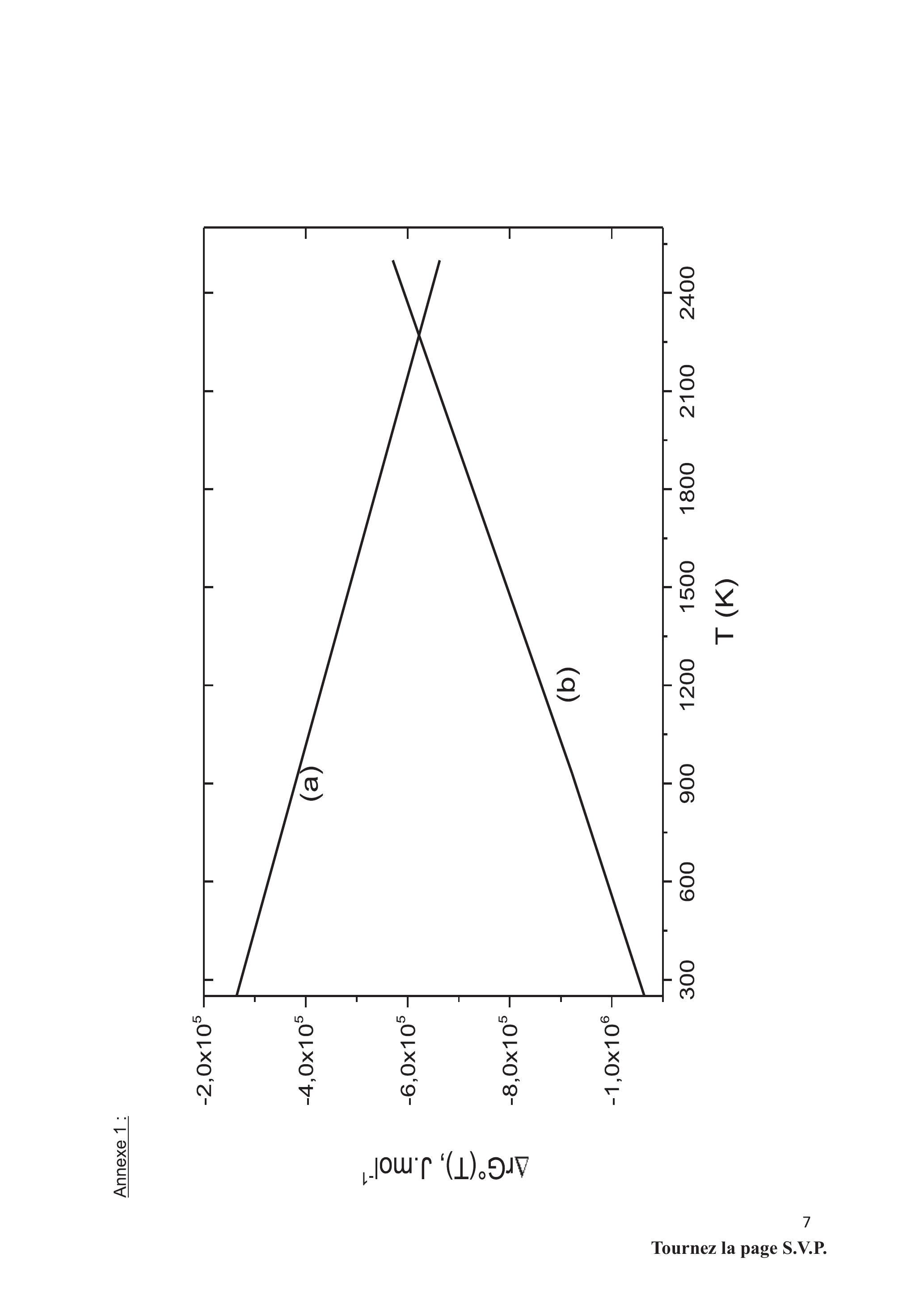 Sur le document annexe, l'évolution de l'enthalpie libre standard de réaction en fonction de la température pour une réaction (2) entre le carbone et l'oxygène a également été représentée. La représentation a été rapportée à une mole de dioxygène.