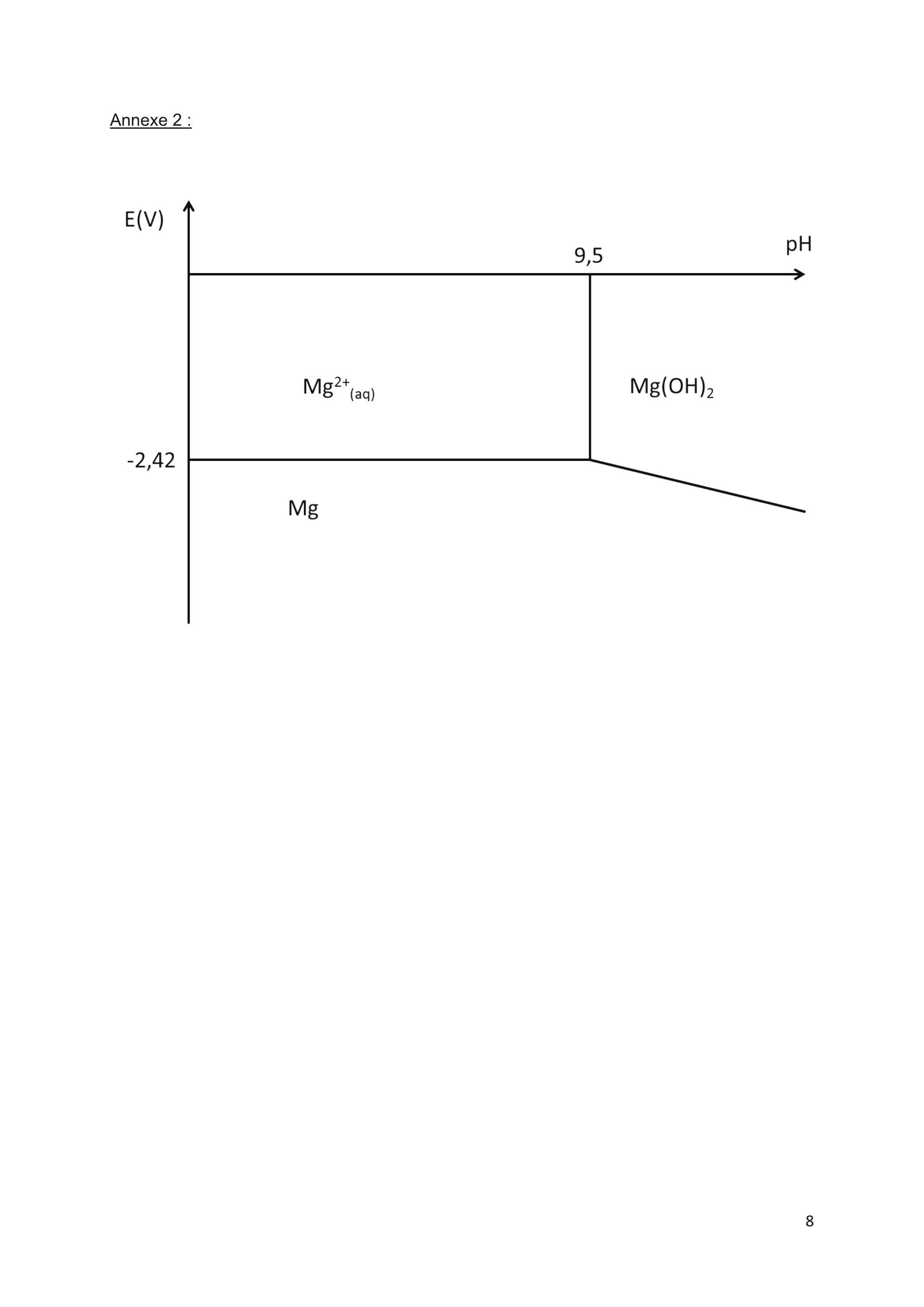 Le diagramme potentiel-pH du magnésium est tracé dans l'annexe 2 pour une concentration de travail à .