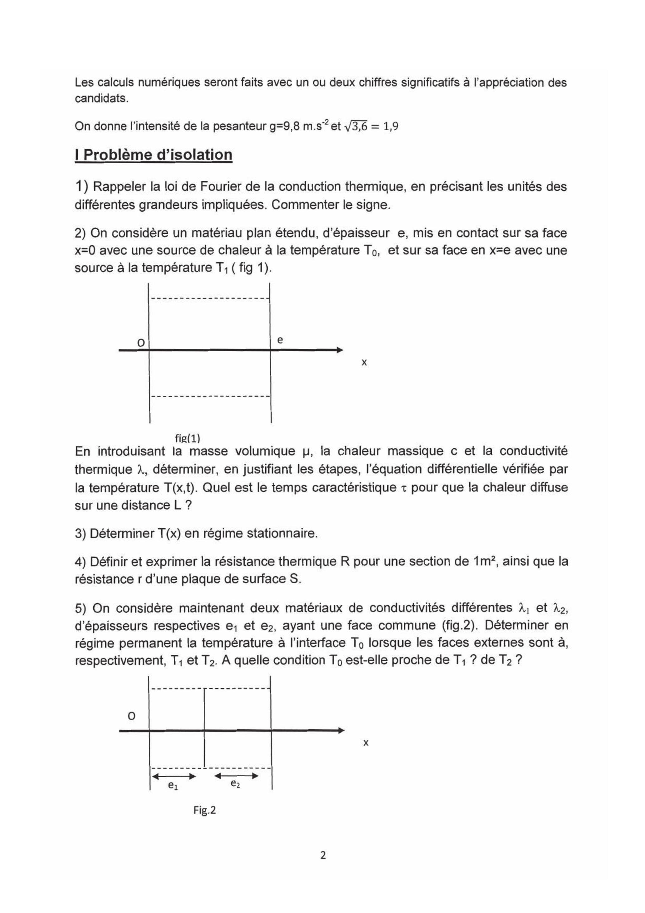 5) On considère maintenant deux matériaux de conductivités différentes et , d'épaisseurs respectives et , ayant une face commune (fig.2). Déterminer en régime permanent la température à l'interface lorsque les faces externes sont à, respectivement, et . A quelle condition est-elle proche de ? de ?