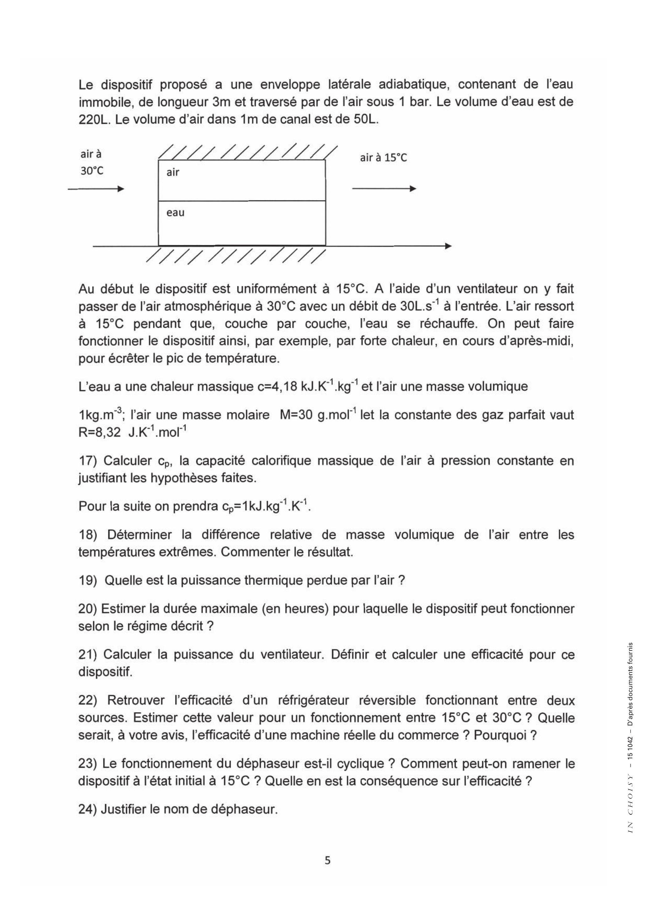 17) Calculer , la capacité calorifique massique de l'air à pression constante en justifiant les hypothèses faites.