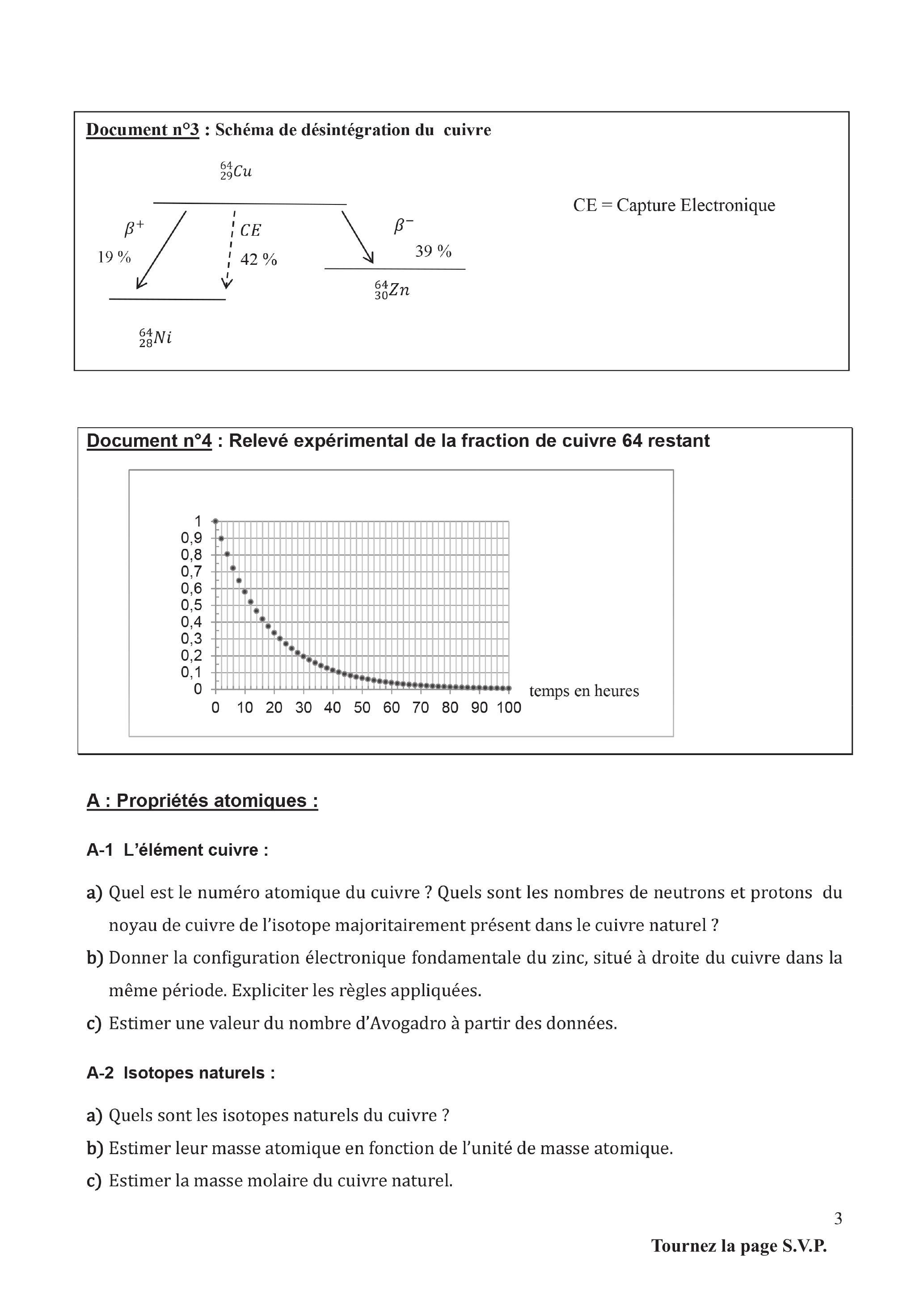 b. Quelle est la fraction de cuivre 64 restant pour et ?