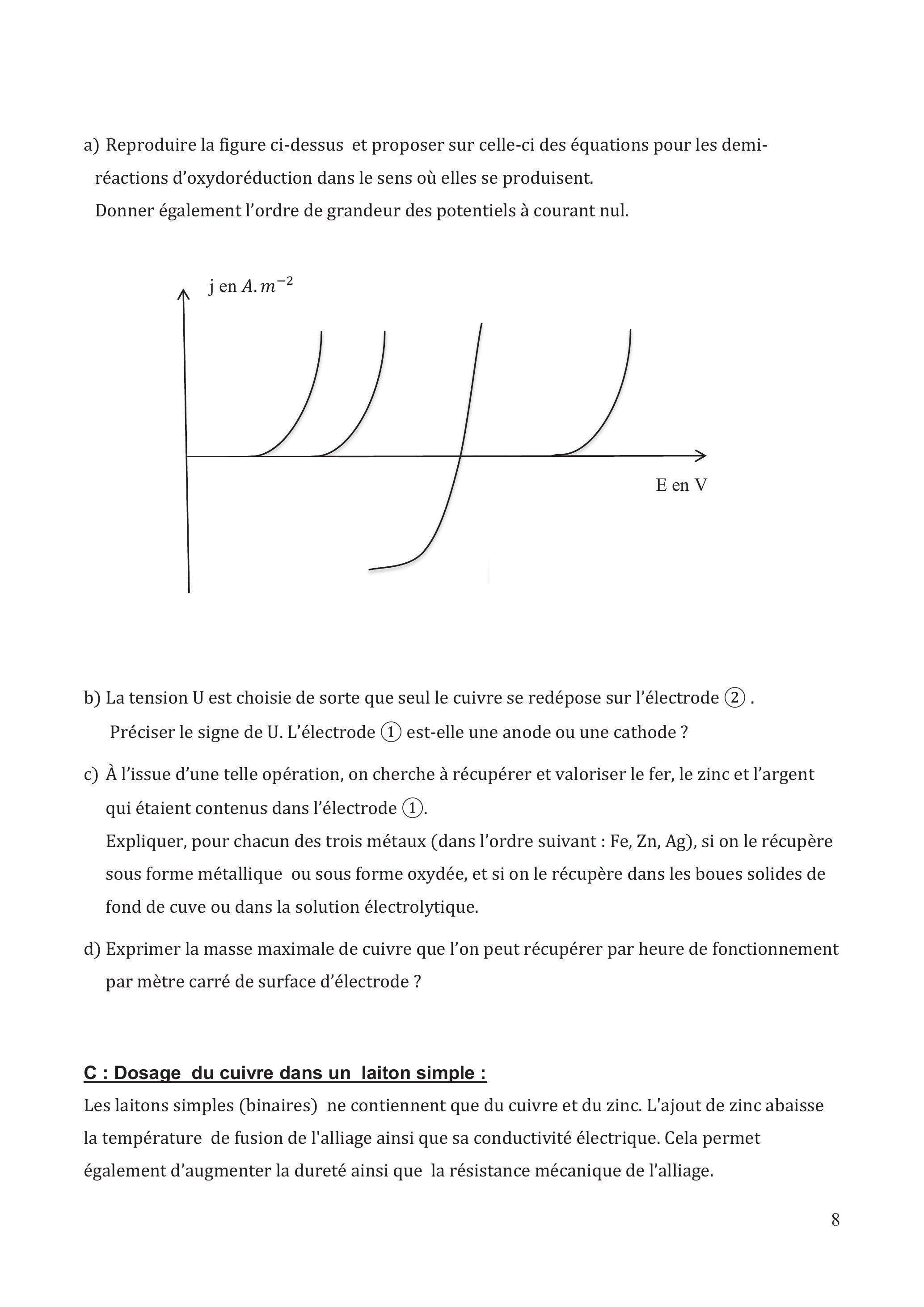 Propriétés du cuivre et de ses oxydes Dosage d'un laiton simple