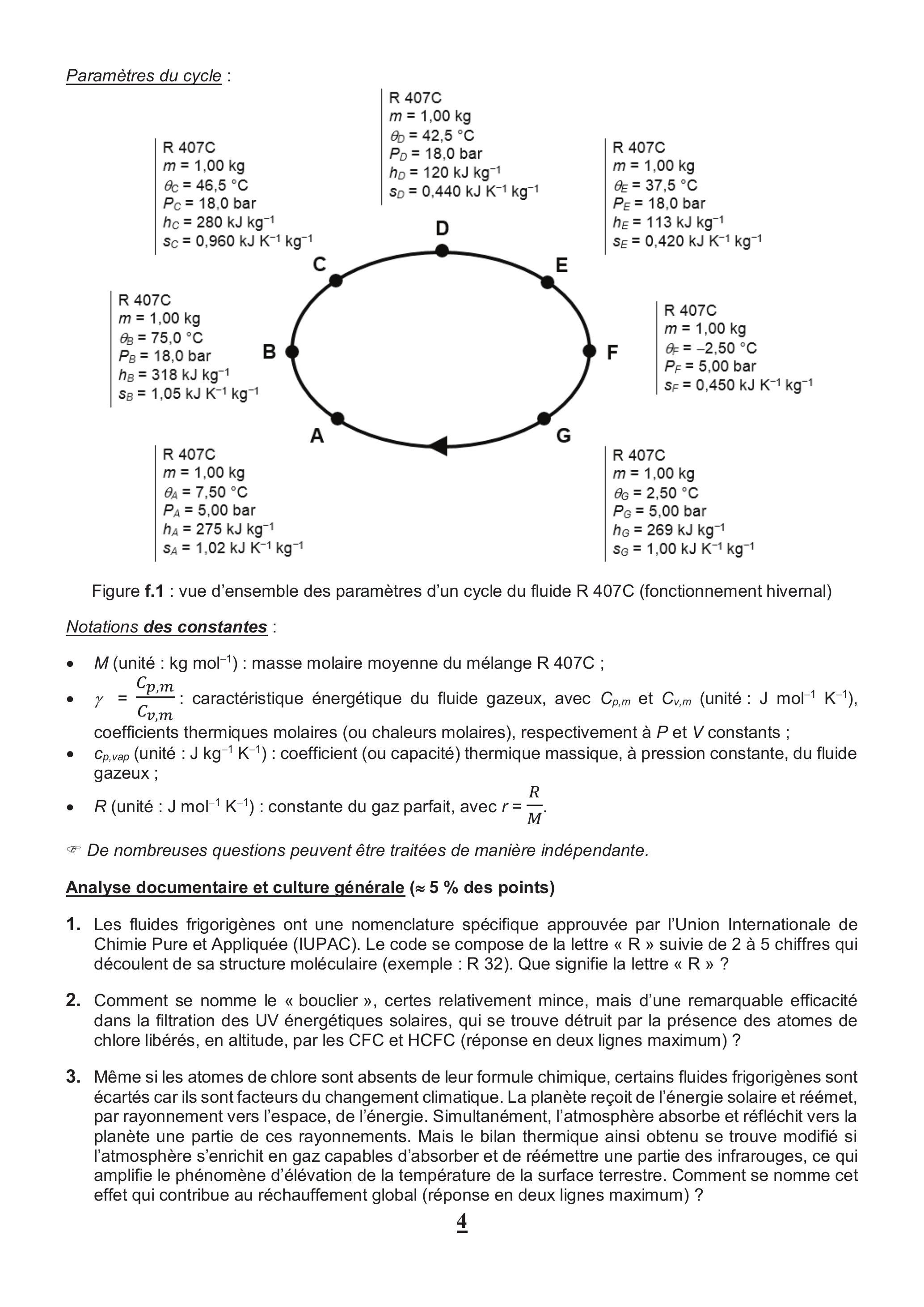 33. En régime permanent, une puissance électrique moyenne él est nécessaire pour faire «tourner» la PAC et maintenir la température de l'atmosphère intérieure à la valeur constante . Soit , le débit massique moyen du fluide dans la machine.
