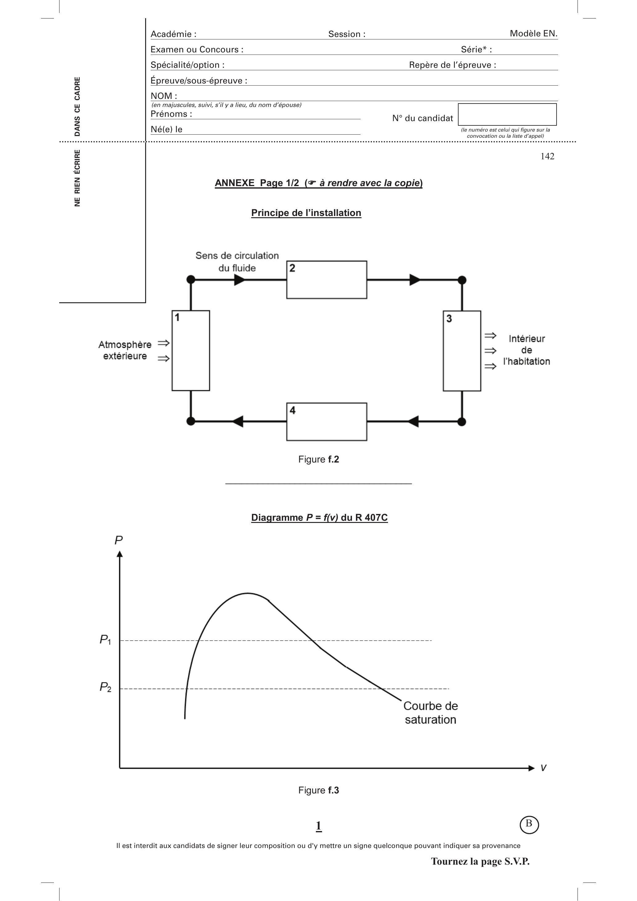 Représenter le cycle complet du fluide sur les trois figures f. 3, f. 4 et f. 5 des feuilles réponses annexes, en repérant, à chaque fois, les sept points représentatifs et . Les diagrammes à compléter sont les suivants :