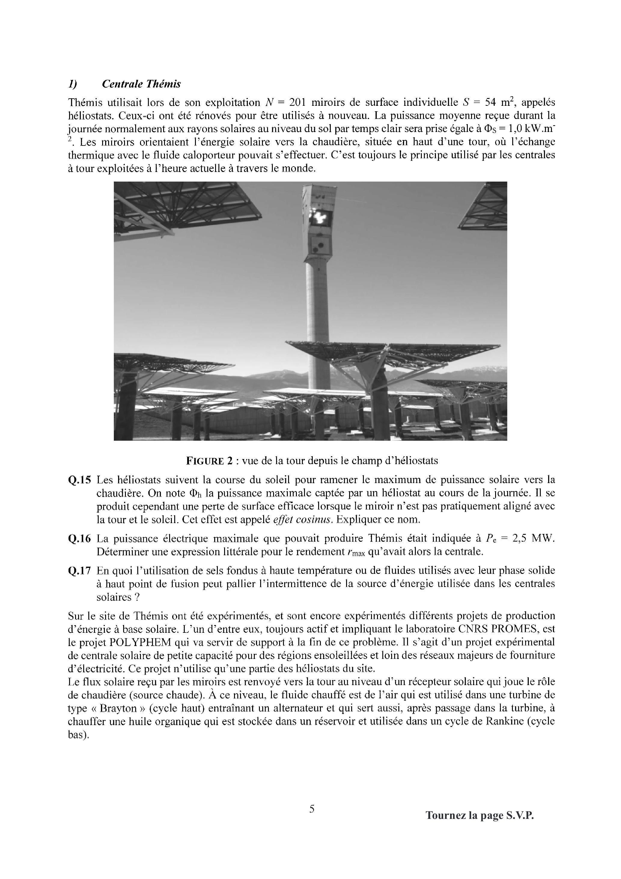 Q. 16 La puissance électrique maximale que pouvait produire Thémis était indiquée à . Déterminer une expression littérale pour le rendement qu'avait alors la centrale.