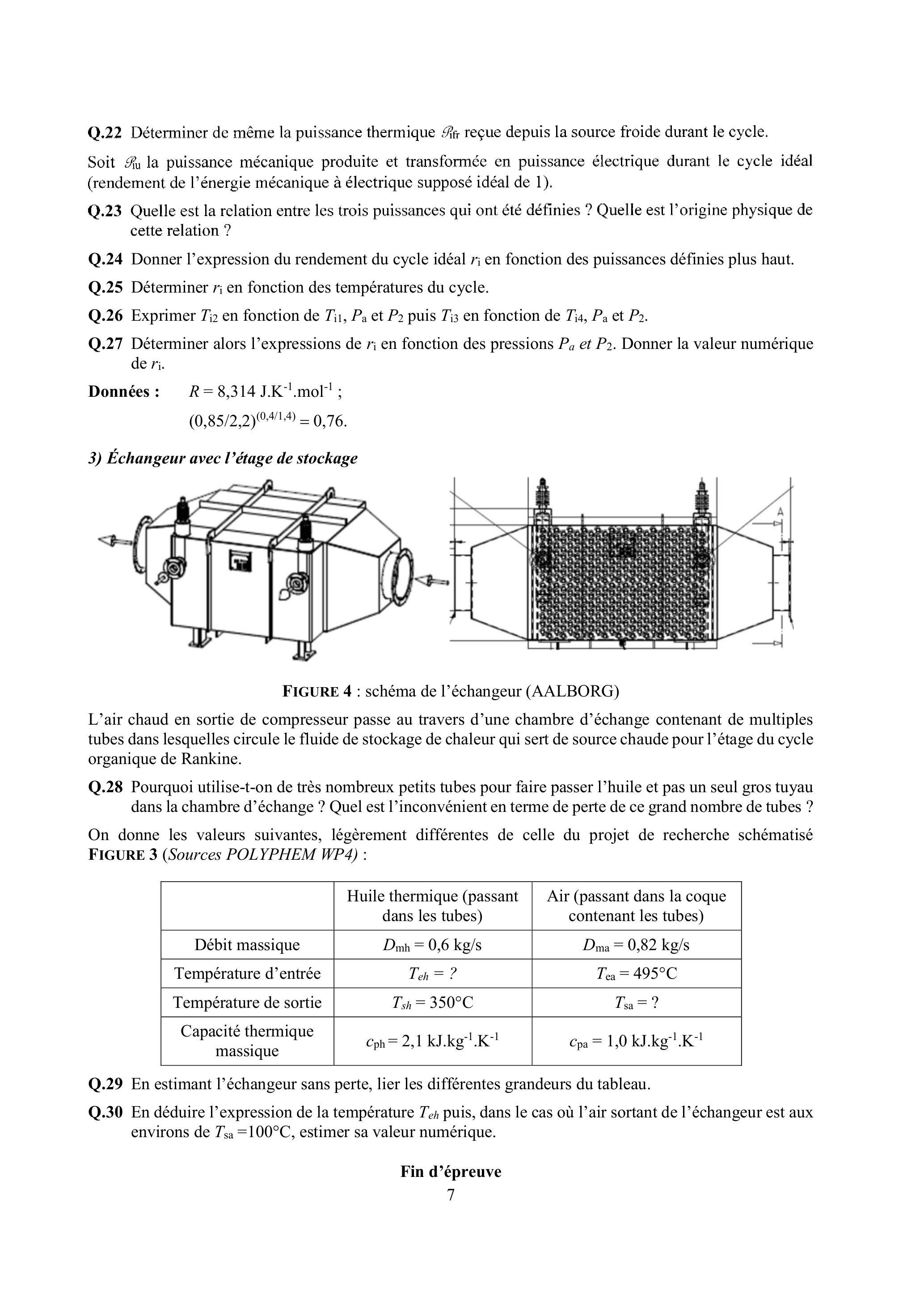 Q. 29 En estimant l'échangeur sans perte, lier les différentes grandeurs du tableau.