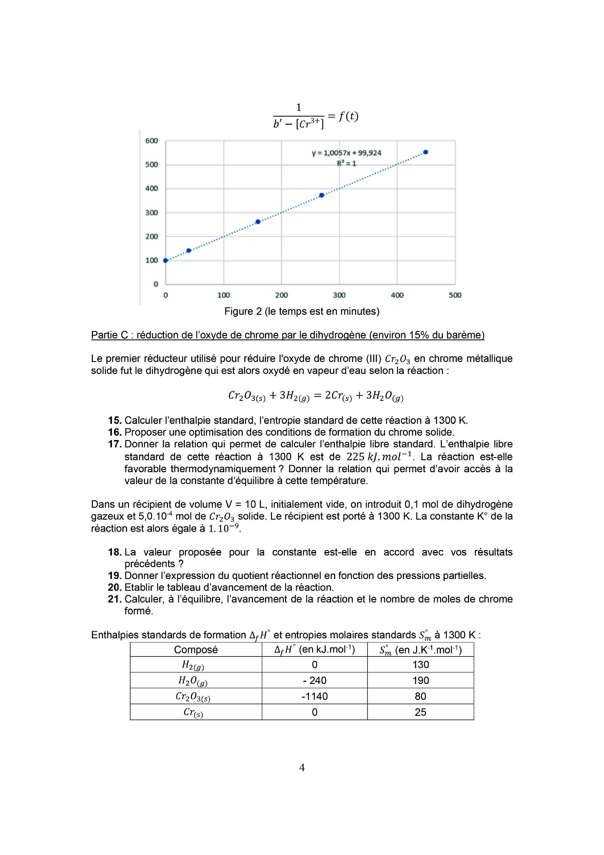 Partie C : réduction de l'oxyde de chrome par le dihydrogène (environ 15% du barème)