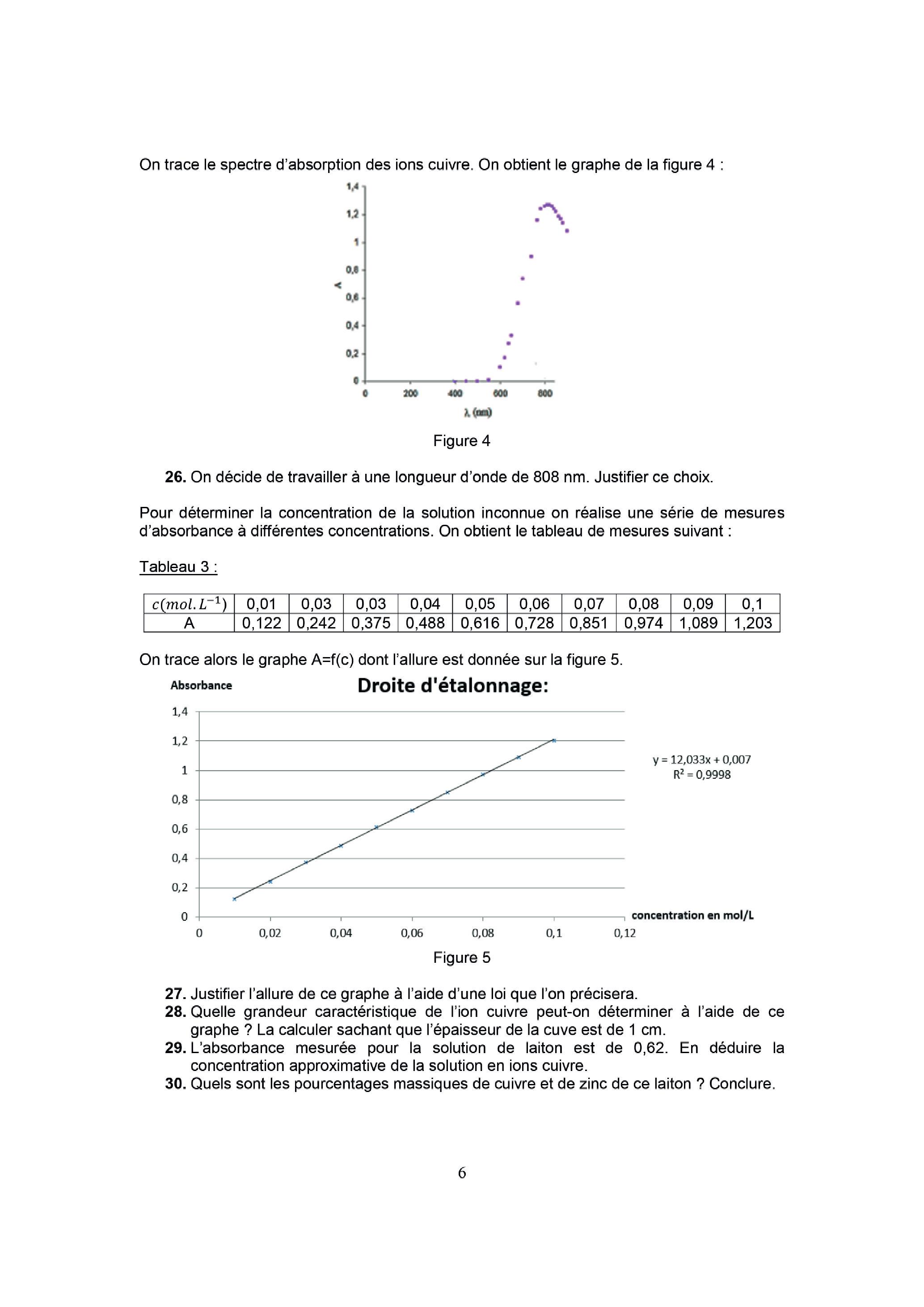 L'absorbance mesurée pour la solution de laiton est de 0,62 . En déduire la concentration approximative de la solution en ions cuivre.