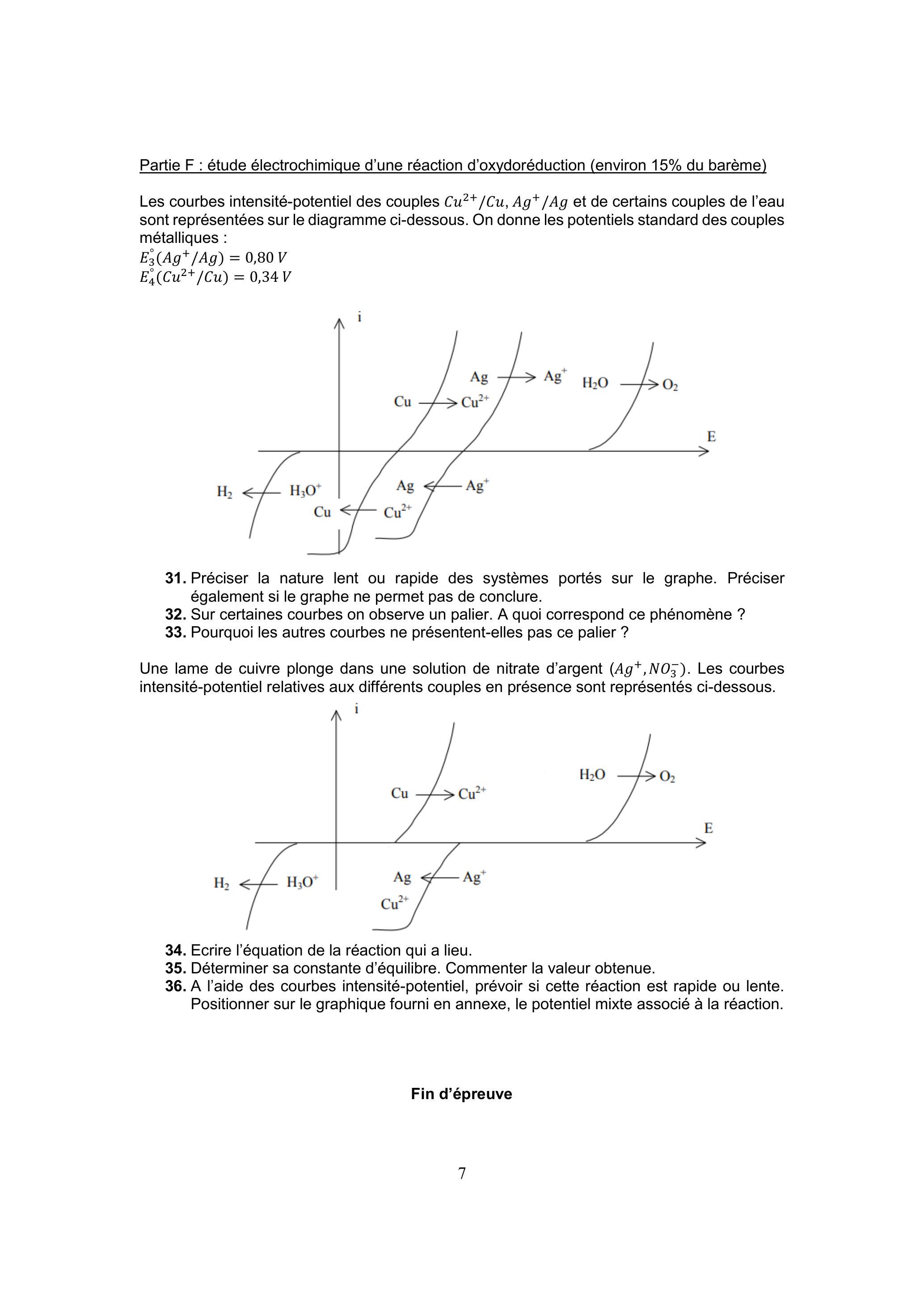 Partie F : étude électrochimique d'une réaction d'oxydoréduction (environ 15% du barème)