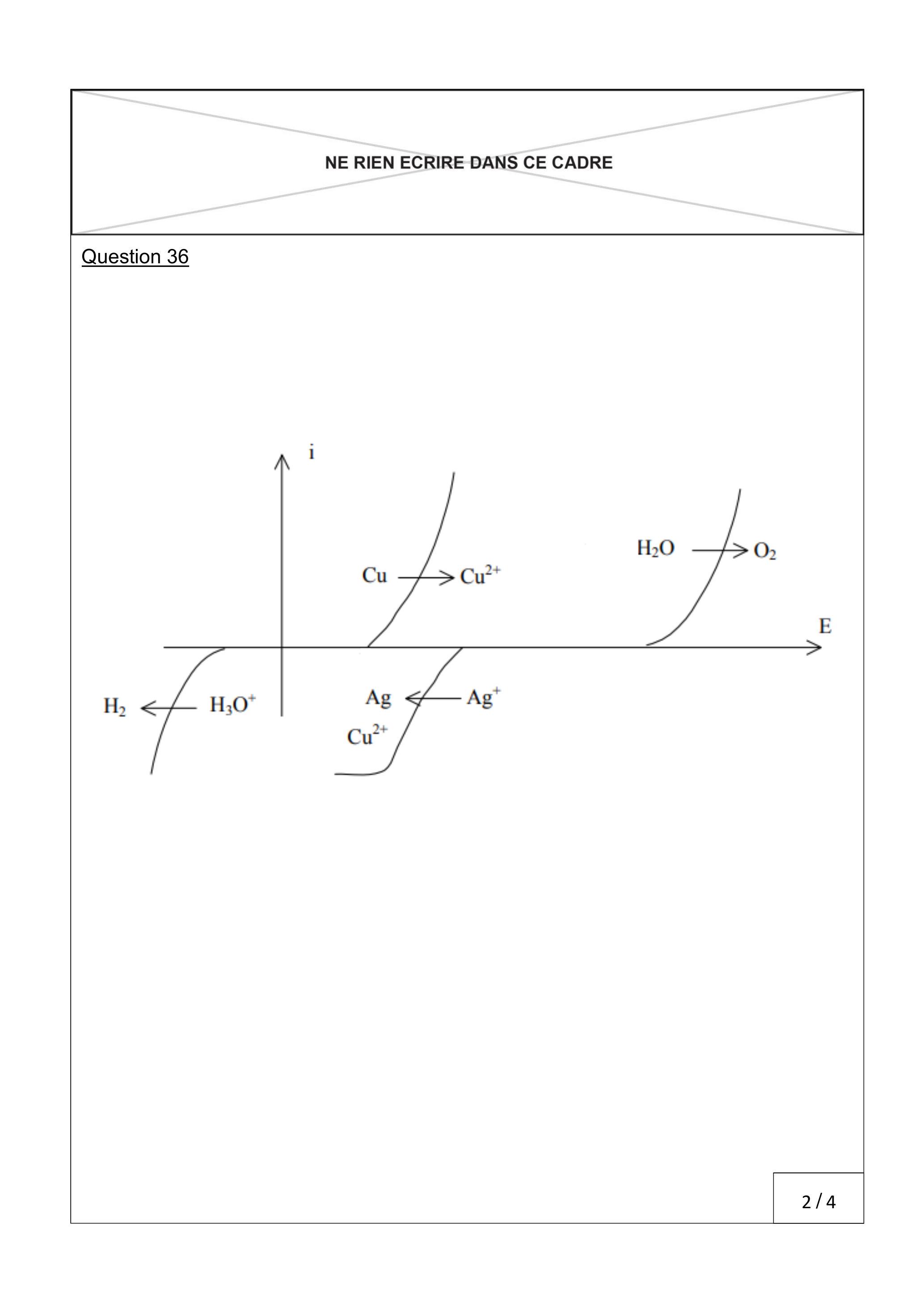 36. A l'aide des courbes intensité-potentiel, prévoir si cette réaction est rapide ou lente. Positionner sur le graphique fourni en annexe, le potentiel mixte associé à la réaction.