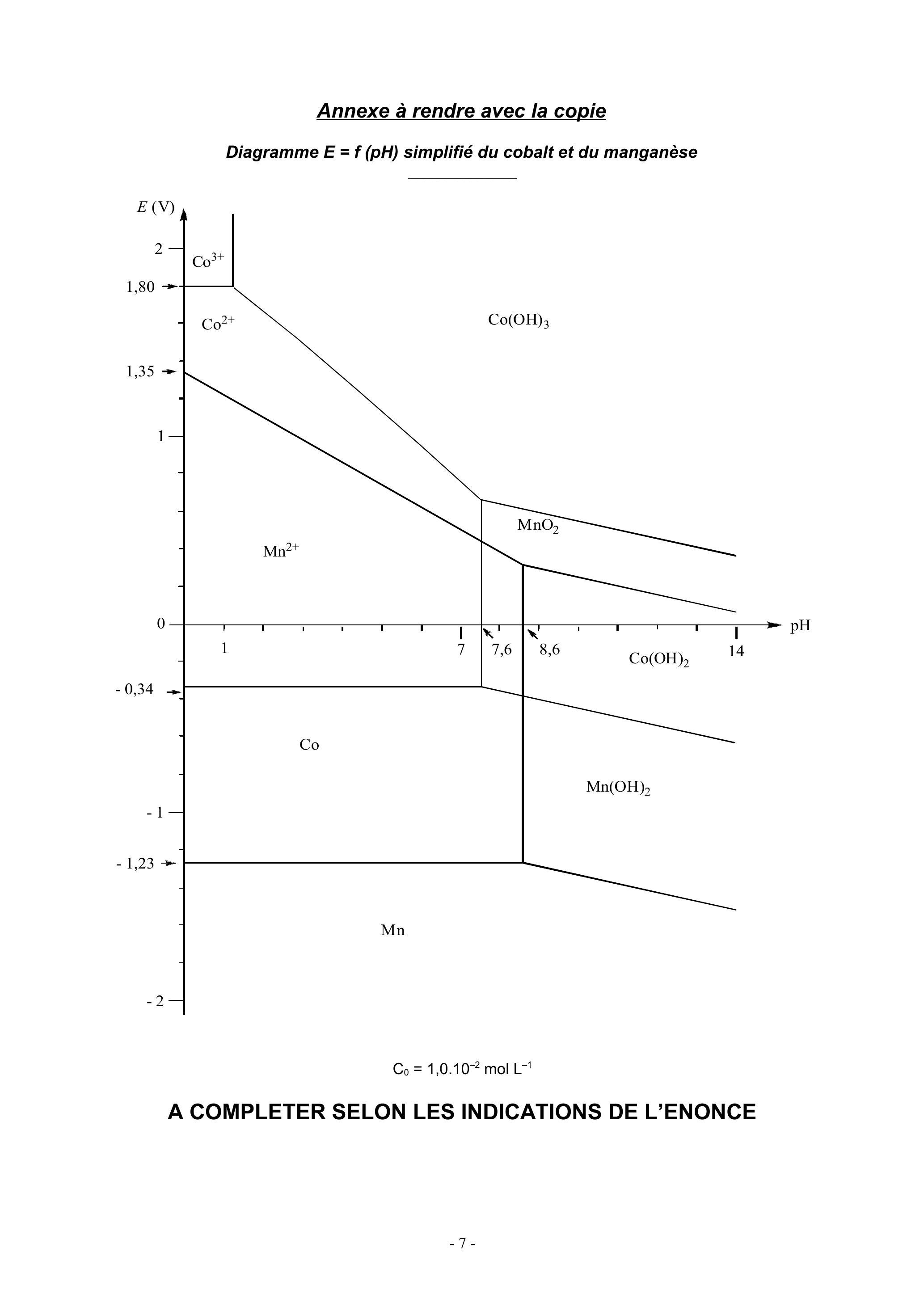 Une opération pyrométallurgique effectuée sur le minerai conduit à un mélange solide contenant du cuivre, du cobalt et du manganèse : la connaissance des diagrammes potentiel correspondant à ces éléments permet d'étudier son traitement.