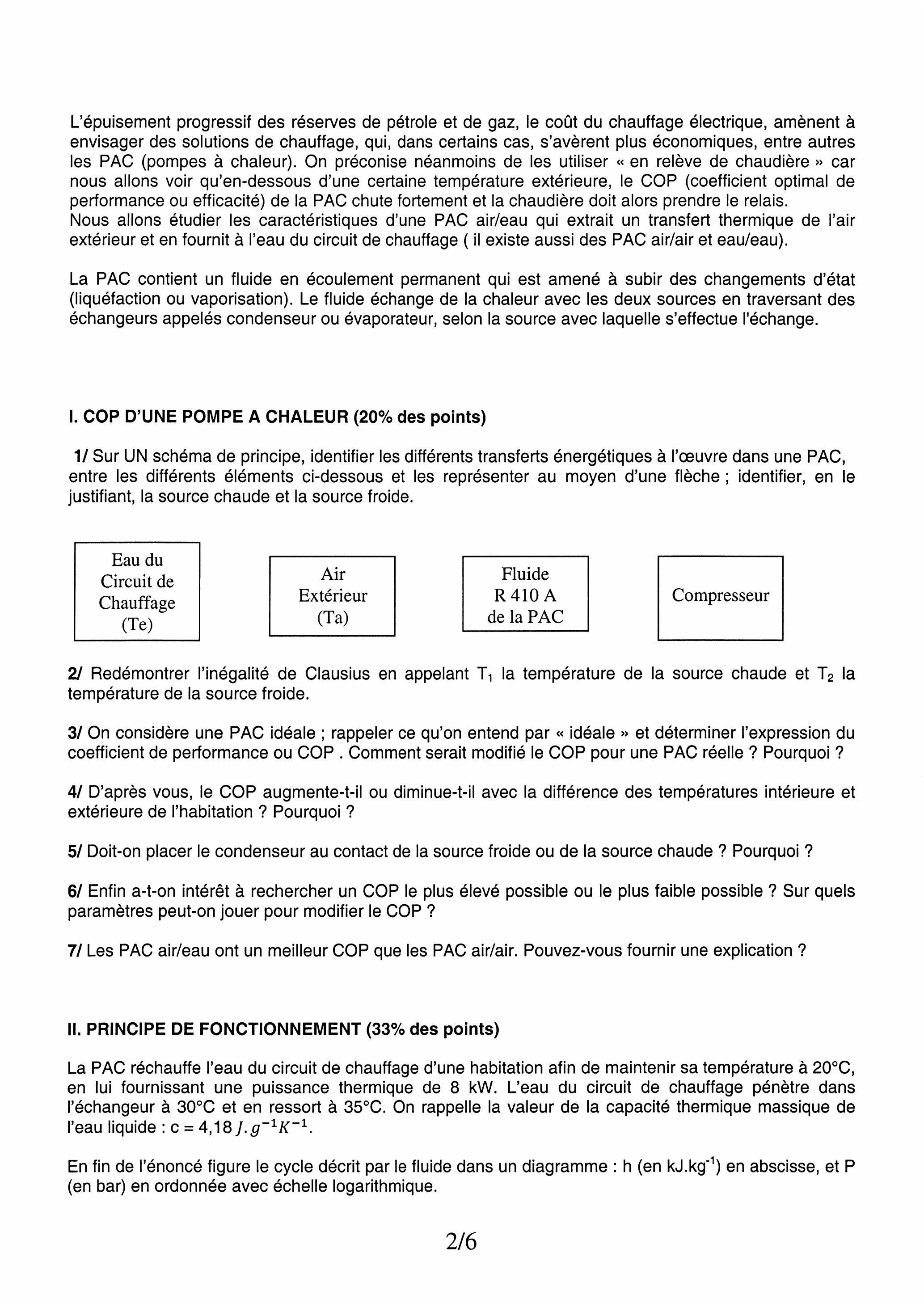I. COP D'UNE POMPE A CHALEUR (20% des points)
