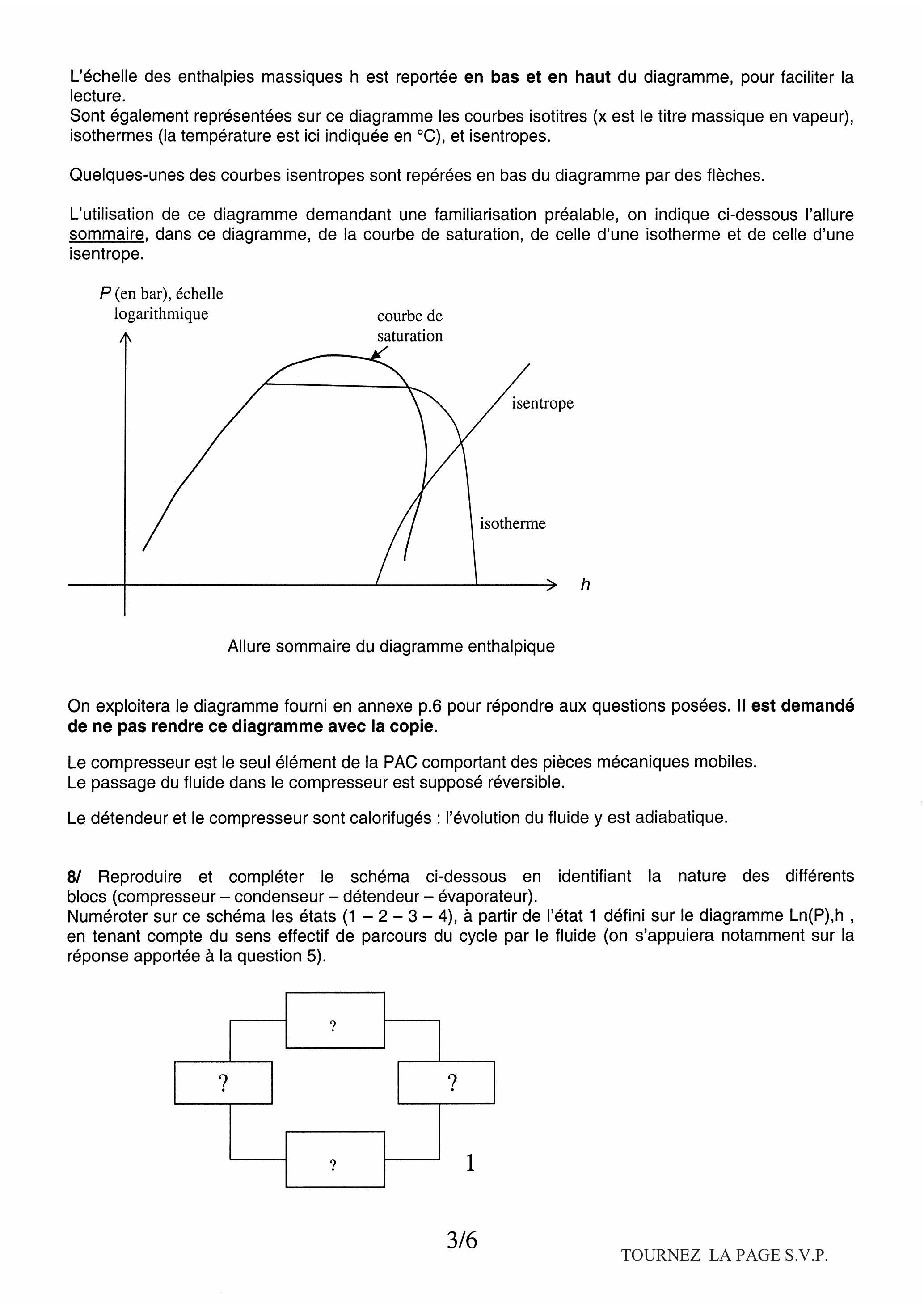 En fin de l'énoncé figure le cycle décrit par le fluide dans un diagramme : en abscisse, et (en bar) en ordonnée avec échelle logarithmique.