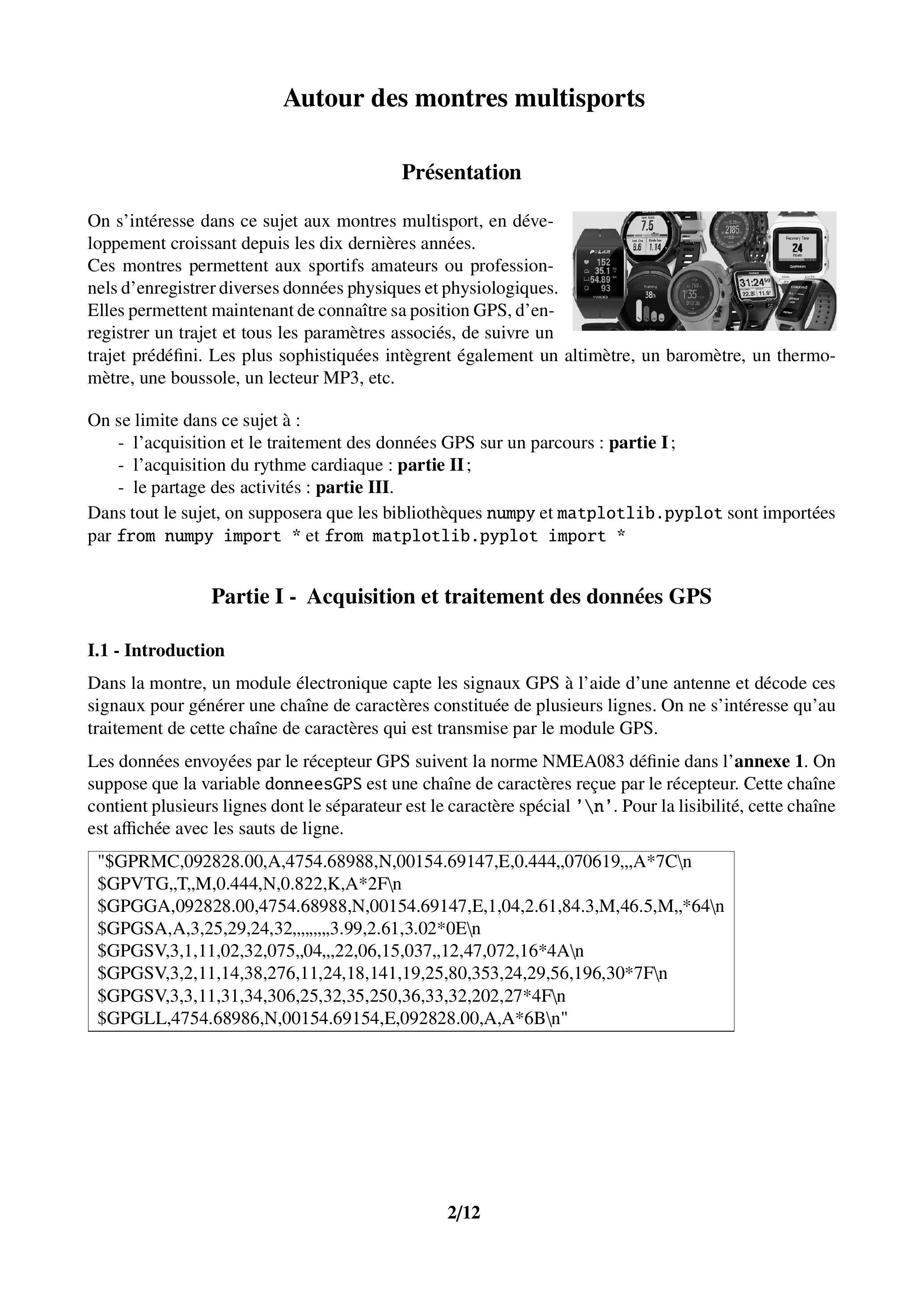 Dans la montre, un module électronique capte les signaux GPS à l'aide d'une antenne et décode ces signaux pour générer une chaîne de caractères constituée de plusieurs lignes. On ne s'intéresse qu'au traitement de cette chaîne de caractères qui est transmise par le module GPS.